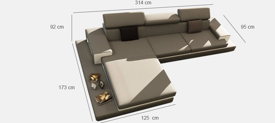 Le Canapé d'angle Rembourrage Canapé Canapé Paysage vivant Suite Siège Coin Textile Cuir est une pièce de mobilier élégante et confortable qui apportera une touche de modernité à votre intérieur. Avec des dimensions généreuses de environ 314 x 173 x 95 cm, ce canapé en forme de L offre un espace spacieux pour se détendre en toute tranquillité. Grâce à son design contemporain et sa construction robuste en bois véritable, ce canapé saura parfaitement s'intégrer dans votre salon tout en offrant un confort optimal. Disponible dans un large choix de couleurs, ce canapé vous permet de personnaliser votre décoration selon vos préférences.