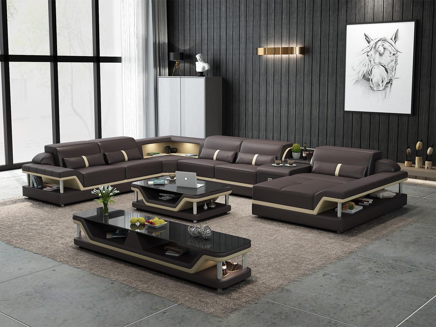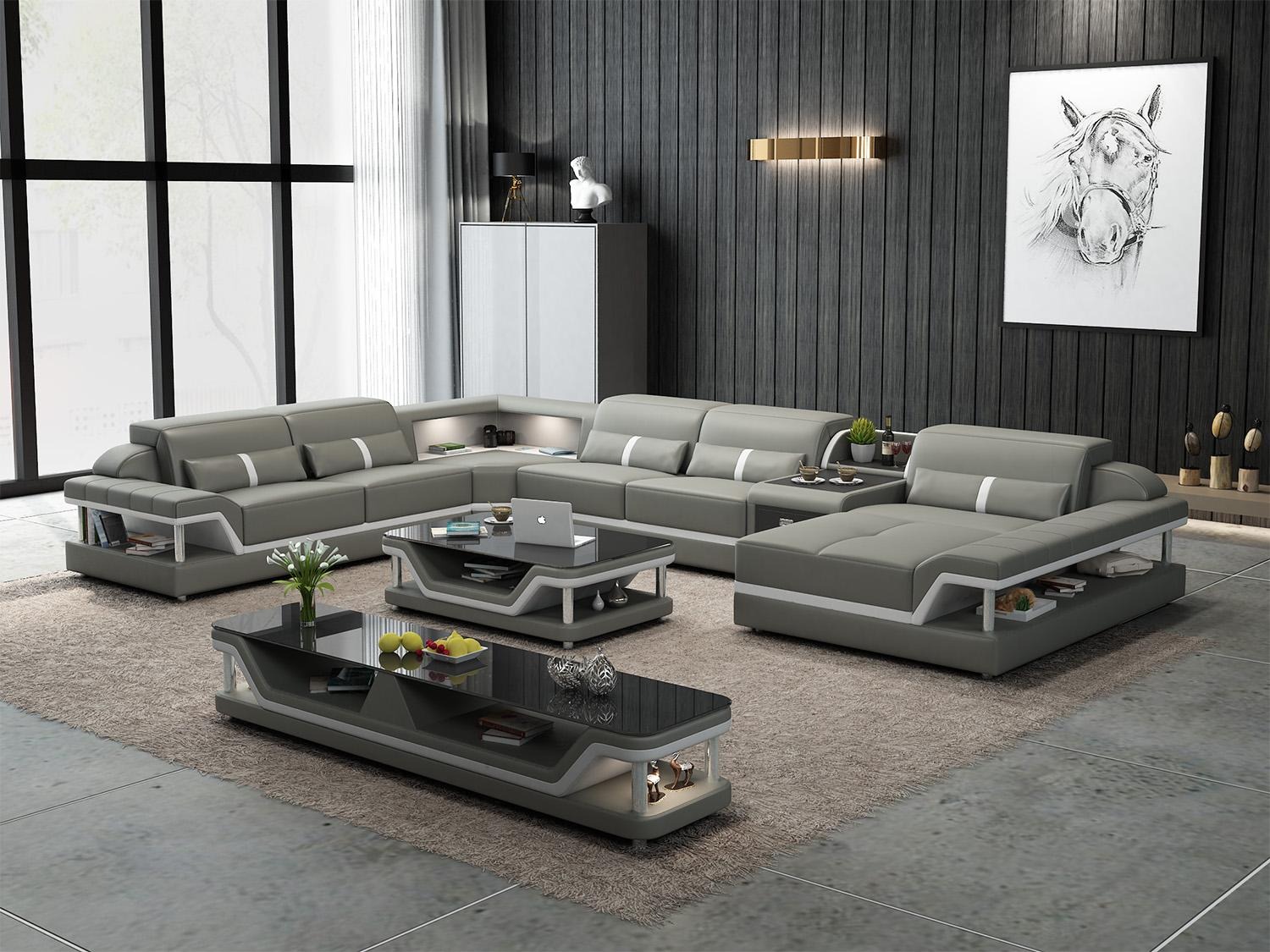 Mots-clés : Achetez un canapé d'angle en forme de U, bon marché, avec un revêtement en cuir, canapé pour le salon.
