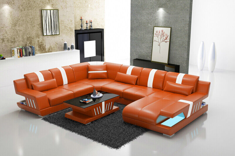 Canapé en cuir en forme de U Canapé Canapé de salon Suite de paysage de vie Design Moderne
