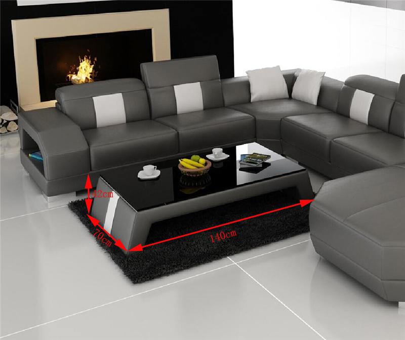 Table basse Design en verre Tables d'appoint Salon est un meuble élégant et fonctionnel qui apporte une touche moderne à votre salon. Avec des dimensions de 120 cm de longueur, 42 cm de hauteur et 70 cm de profondeur, cette table basse offre un espace généreux pour vos besoins quotidiens. Fabriquée avec un matériau de qualité supérieure, le tissu en fibre de cuir premium (70% cuir / 30% polyester) assure à la fois durabilité et confort. La carcasse en cadre intérieur en bois véritable renforce la solidité de cette table, en lui conférant une stabilité optimale pour l'utilisation au quotidien.
