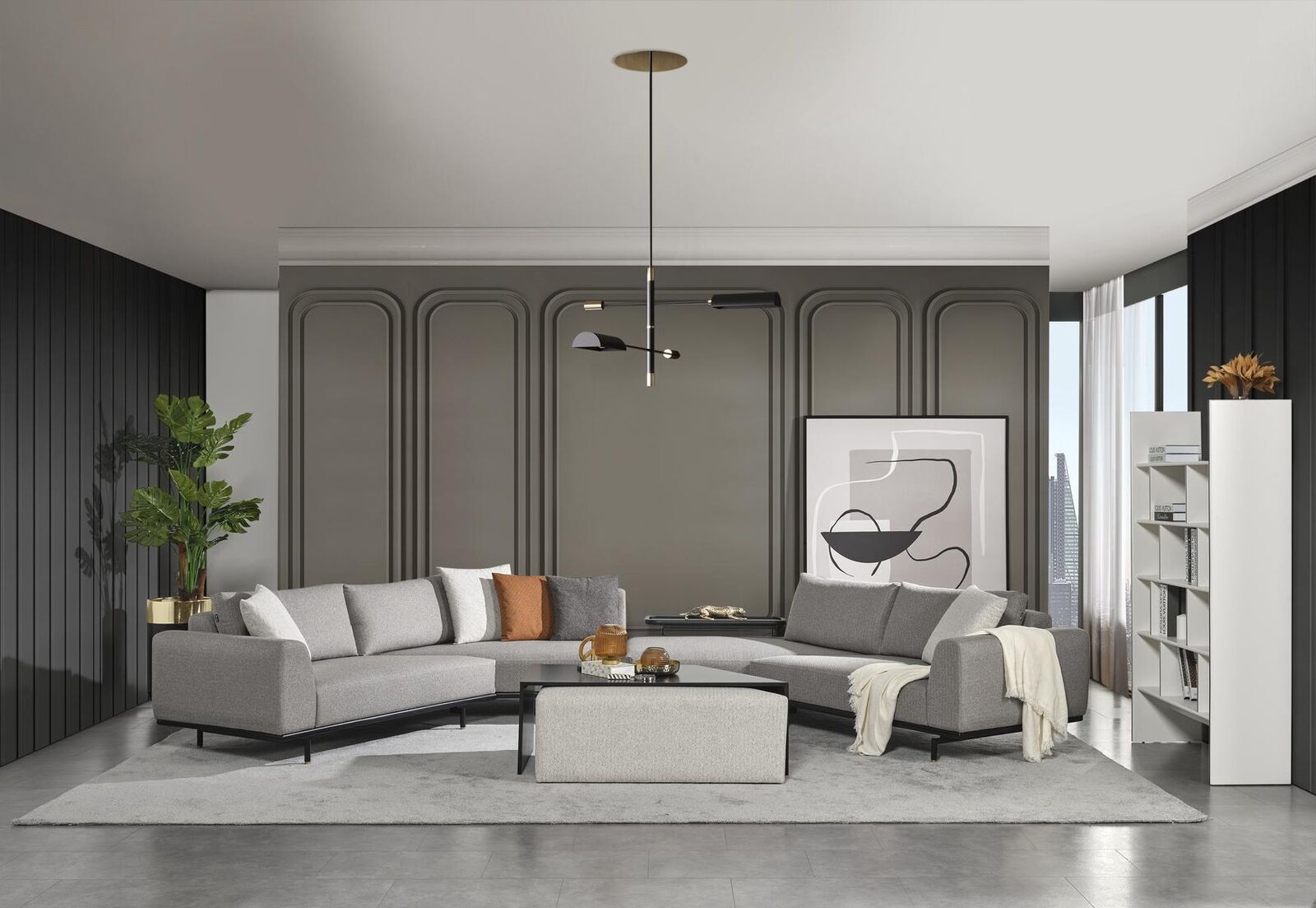 Canapé d'angle Canapé Sofa Textile Paysage de vie Mobilier de luxe en forme de U Table basse