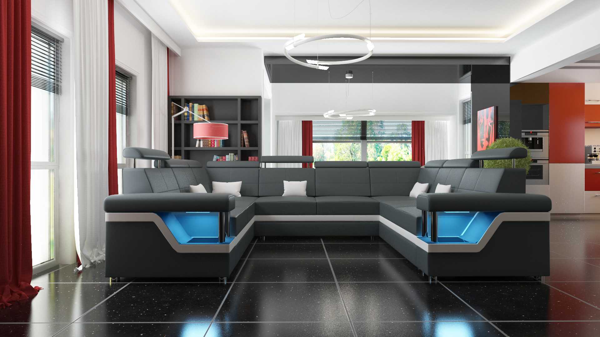Canapé en cuir avec USB grand canapé d'angle XXL Canapé coin salon Canapé Rembourrage Siège LED