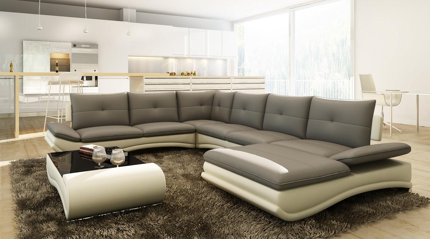 Canapé en cuir XXL en forme de U Salon Canapé Grand canapé en cuir Sofas