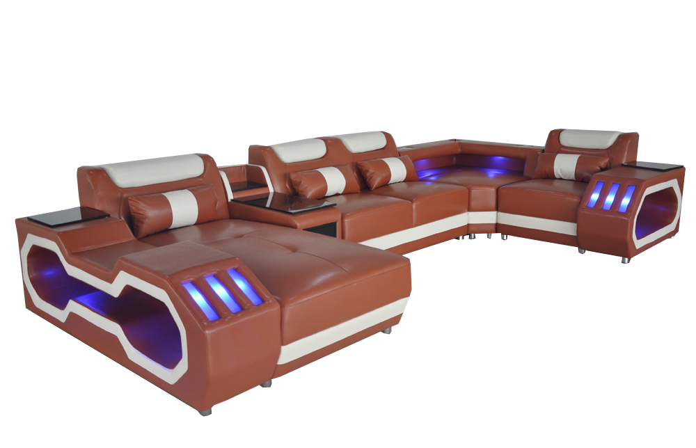 Canapé en cuir Canapé Modèle de suite pour Salon Moderne Canapé en forme de U avec USB