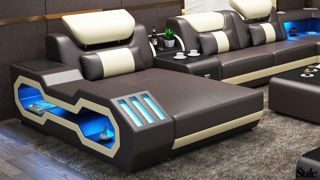 Paysage de vie Canapé d'angle en forme de U + table basse + design de bahut