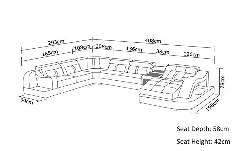 Canapé design Ensemble complet Suite Tapisserie Canapé d'angle Canapé d'angle Canapé Bahut est un ensemble de meubles élégant et luxueux qui transformera votre espace de vie en un lieu de confort et de style. Ce set comprend un canapé d'angle en forme de U de dimensions généreuses, offrant un espace spacieux pour vous détendre. Fabriqué en tissu en fibre de cuir premium (70% cuir / 30% polyester) de haute qualité, ce canapé garantit durabilité, confort et esthétique. Avec un design contemporain et des finitions soignées, ce canapé apportera une touche sophistiquée à votre salon.