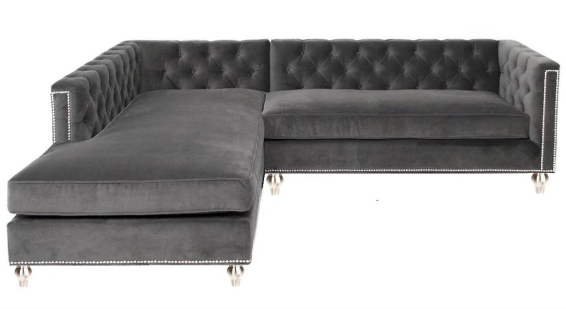 Canapé d'angle Paysage vivant Canapé Suite d'angle Rembourrage Tissu de velours Mobilier Design Gris