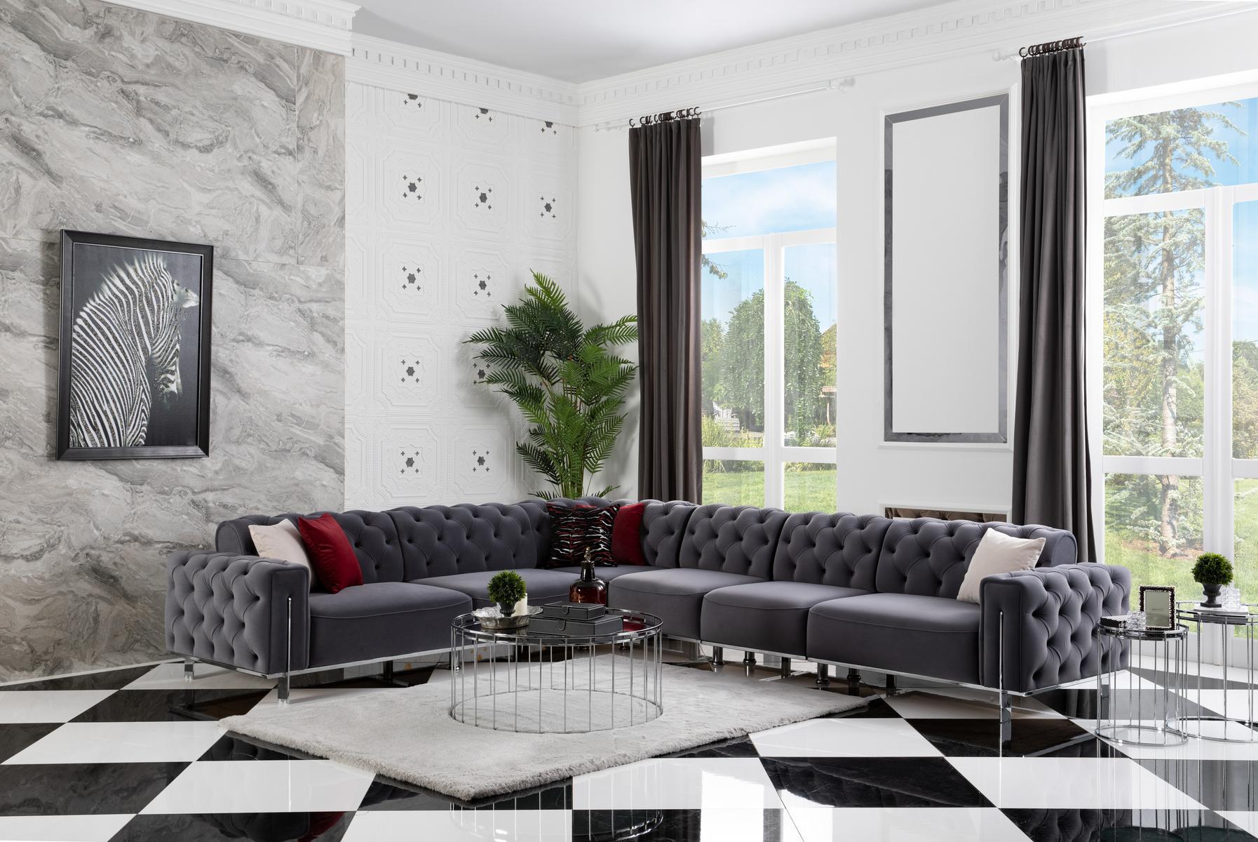 Mots-clés : Canapé d'angle en forme de L, meubles de salon, meubles Chesterfield, meubles modernes