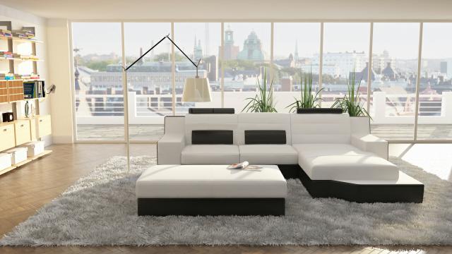 Canapé d'angle design en cuir avec rembourrage textile Ensemble canapé Canapé paysage vivant