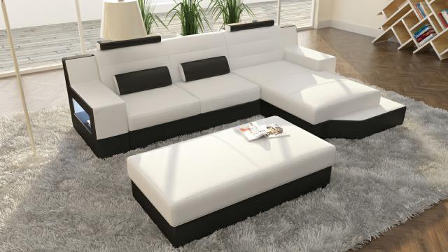 D'une qualité exceptionnelle, ce canapé allie à la perfection élégance et confort. Grâce à son design moderne, il s'intègre harmonieusement dans n'importe quel style de décoration. Que vous souhaitiez profiter de moments conviviaux entre amis, regarder un bon film en famille ou tout simplement vous détendre après une longue journée, ce canapé d'angle est l'option idéale pour votre salon. Sa fabrication soignée en cuir et rembourrage textile assure une durabilité et un confort sans pareils. Offrez-vous un espace de vie luxueux et accueillant avec ce splendide canapé d'angle.