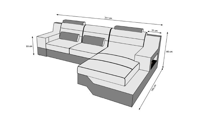 Longueur : env. 311 x 195 cm ou  195 x 311 cm