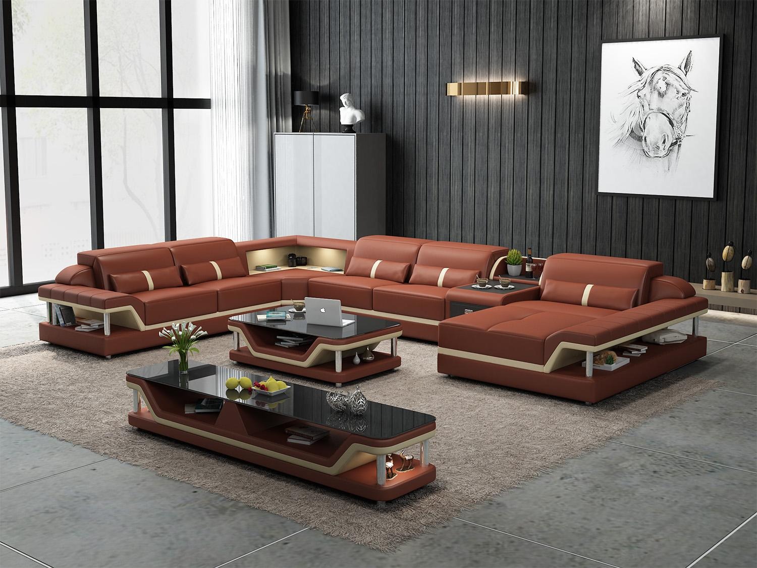 Ce mobilier Paysage vivant est fabriqué avec des matériaux de haute qualité, notamment un tissu en fibre de cuir premium (70% cuir / 30% polyester) pour une durabilité accrue. L'option de personnalisation avec un repose-pieds électrique et un système audio via Bluetooth offre une expérience de détente et de divertissement ultime. De plus, l'éclairage sous le corps avec télécommande ajoute une ambiance moderne et personnalisable à votre espace de vie. Transformez votre salon en un lieu de confort et de style inégalé avec le Paysage vivant Canapé d'angle en forme de U Table basse Buffet Design Paysage vivant 3 pièces.