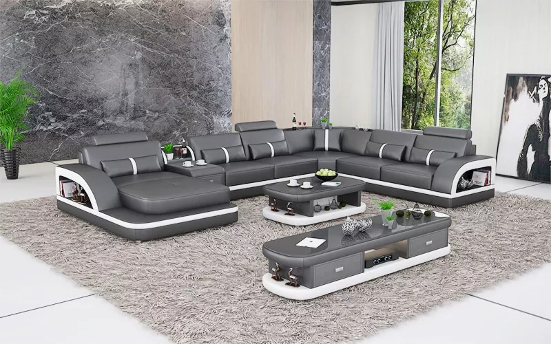 Mots-clés : Achetez un canapé d'angle en forme de U, pas cher, avec revêtement en cuir, canapé pour le salon