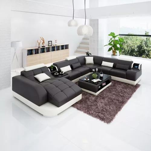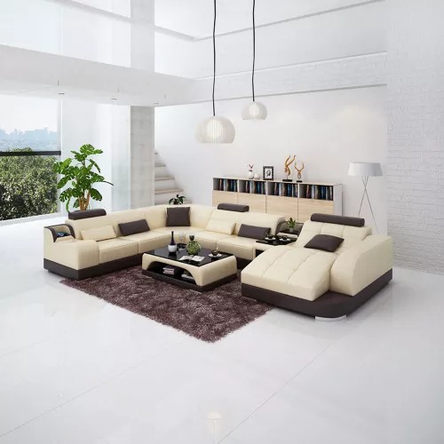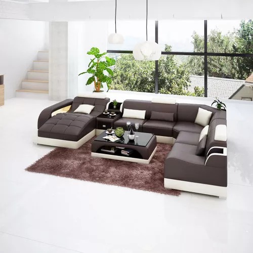 Mots-clés : Achetez un canapé d'angle en forme de U, pas cher, avec un revêtement en cuir, pour le salon.