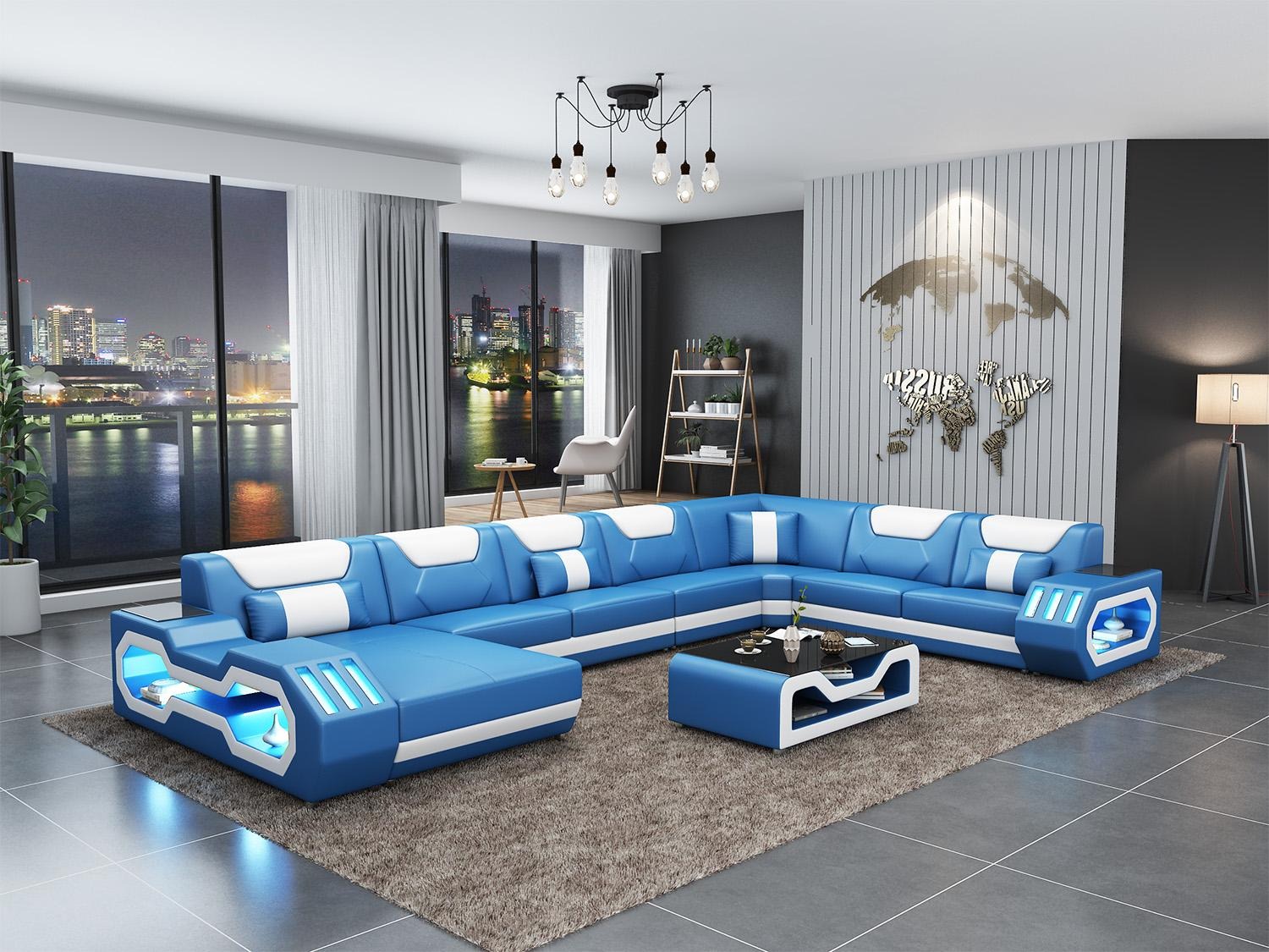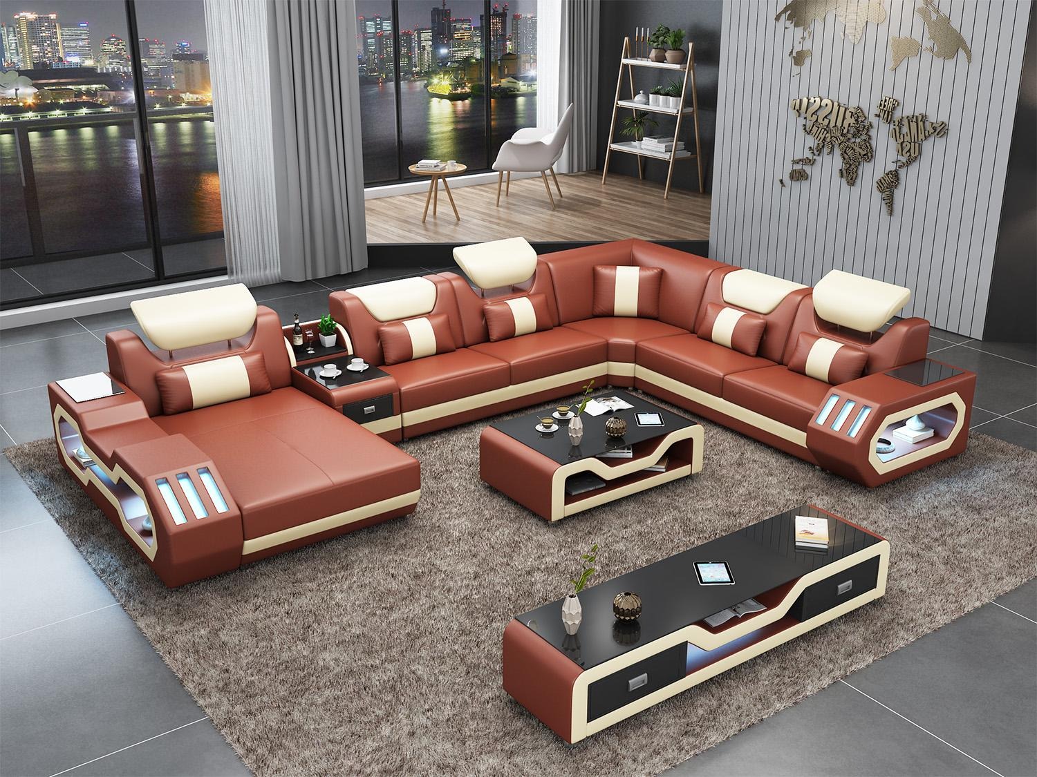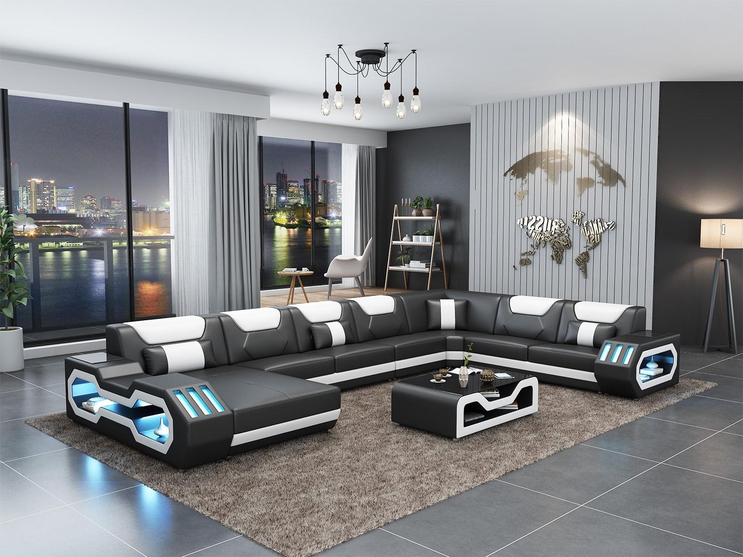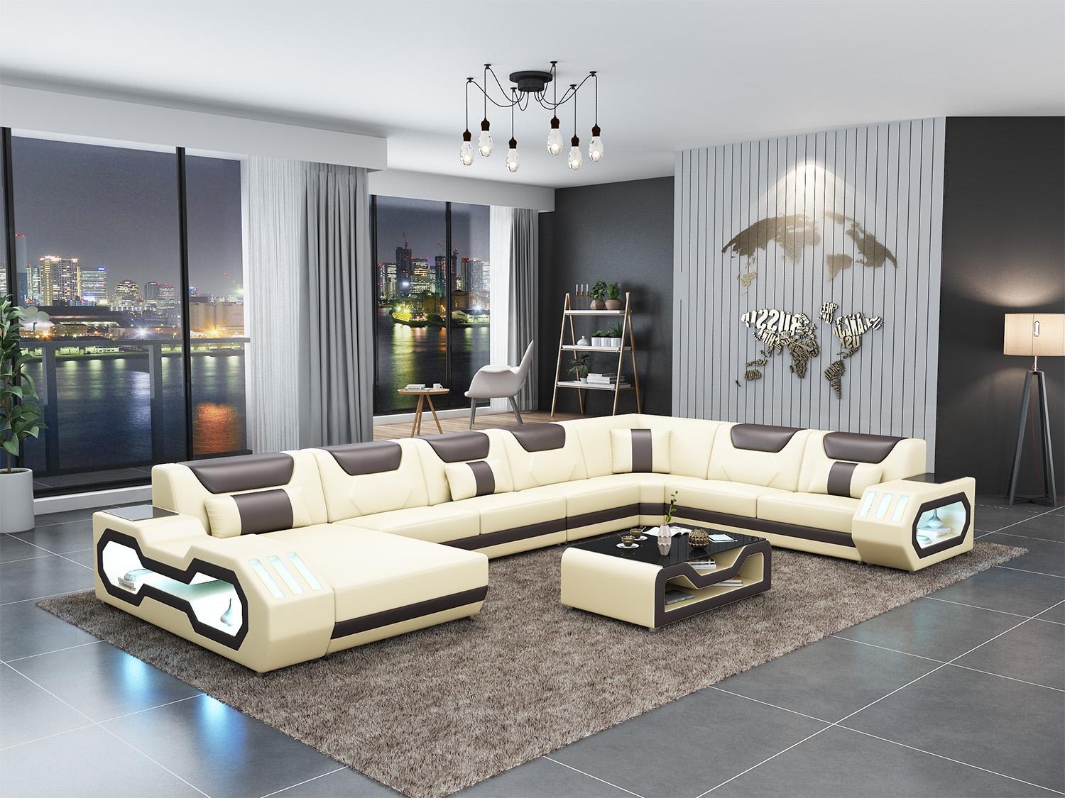 Paysage vivant canapé d'angle en forme de U Table basse Buffet de design Paysage vivant Grand nouveau : Offrez-vous un espace de vie luxueux et confortable avec ce magnifique ensemble de salon contemporain. Le canapé d'angle en forme de U offre des dimensions généreuses pour accueillir confortablement vos invités, tandis que la table basse et le buffet de design ajoutent une touche d'élégance à votre intérieur. Fabriqué avec un matériau de qualité supérieure en tissu en fibre de cuir premium (70% cuir / 30% polyester), cet ensemble est à la fois durable et esthétique.