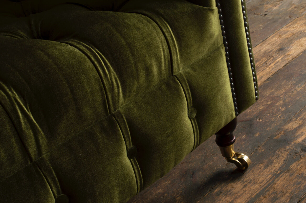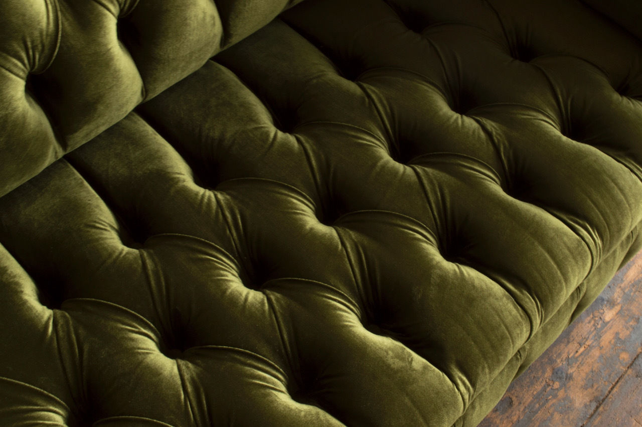 Canapé classique 2 places Chesterfield en tissu velours avec cristaux vert velours neuf