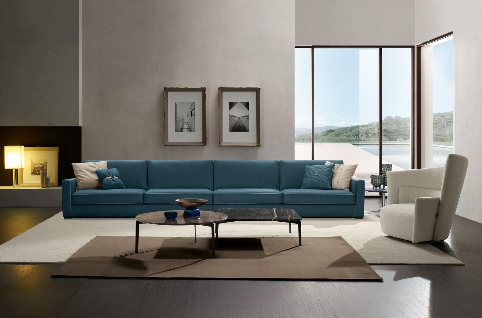 Canapé 4 places en cuir rembourré Canapés en cuir italien bleu de design