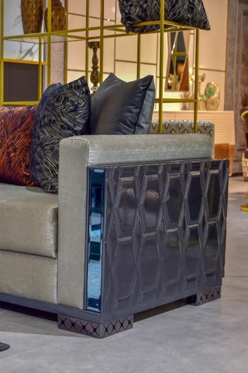 Canapé de luxe trois places Design de siège 3 places Siège brun Métal avec Textile