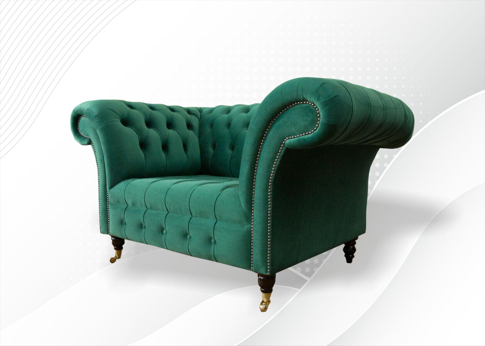 Fauteuil Chesterfield en tissu vert design tapissé neuf créatif salon luxe