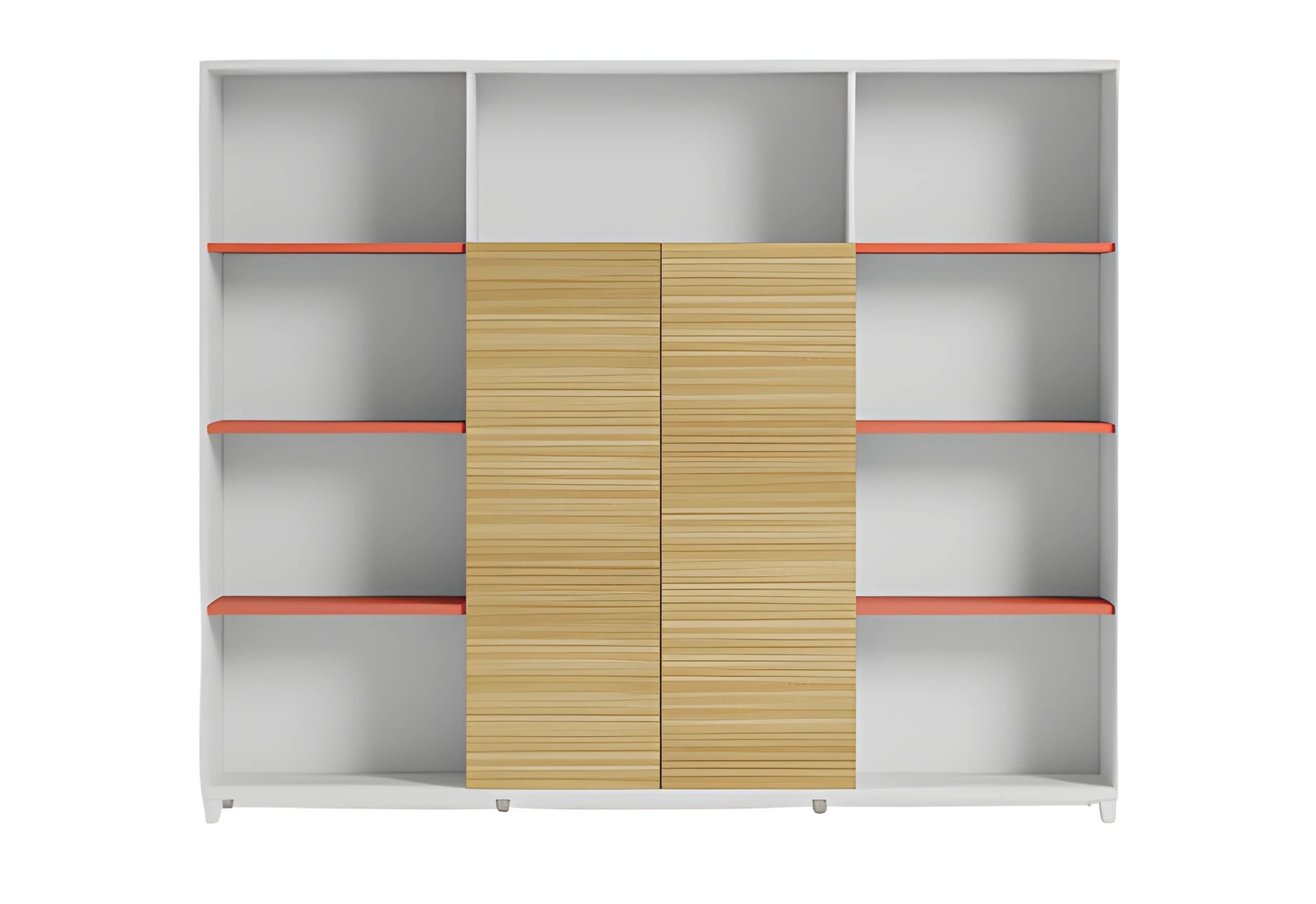 Mots-clés : Lampe de bureau élégante avec étagères en bois et détails orange | xlmeubles.fr