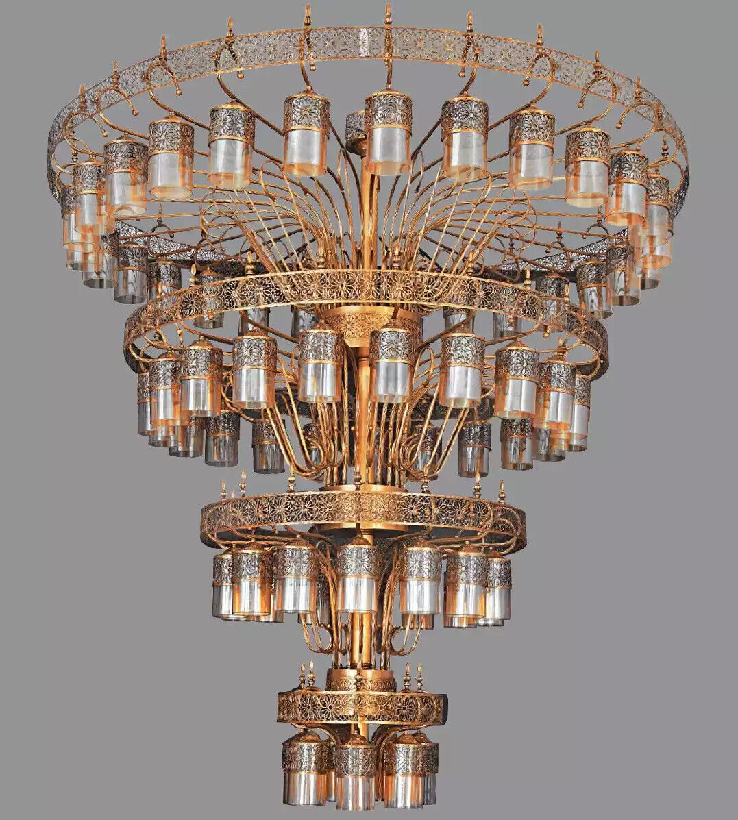 Ce luminaire au modèle BS.2793-52-70 dispose de 60 ampoules E27 pour une luminosité optimale. La lampe est conforme aux normes de sécurité avec sa certification CE et ne supporte pas de variateur. Idéal pour les grands espaces tels que les salons, les salles à manger ou les halls d'entrée, ce lustre ajoutera une ambiance majestueuse et contemporaine à votre décor intérieur. Donnez à votre maison un éclairage d'exception avec le xxl Lustre Lampadaire Suspension Lustre 200x350.