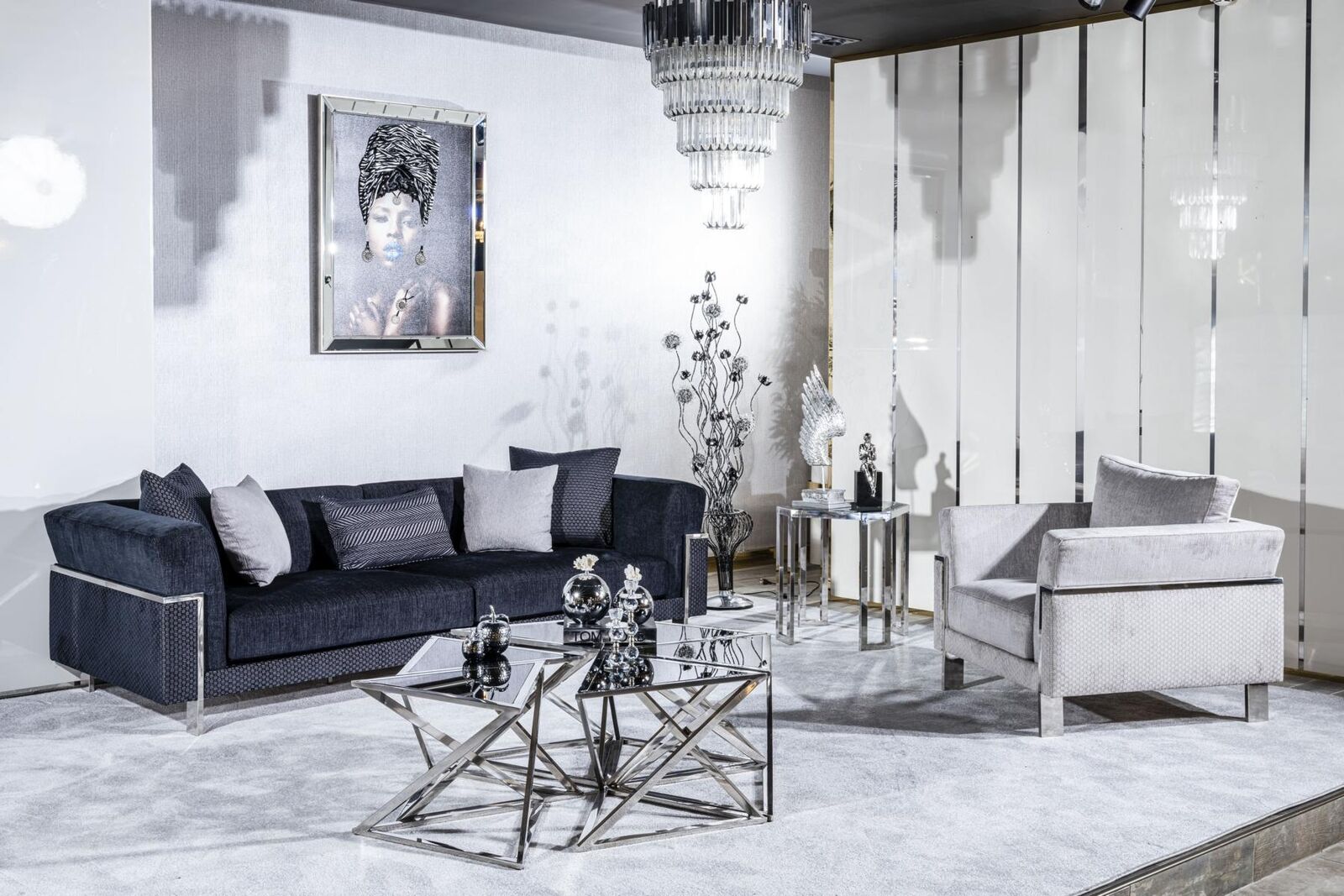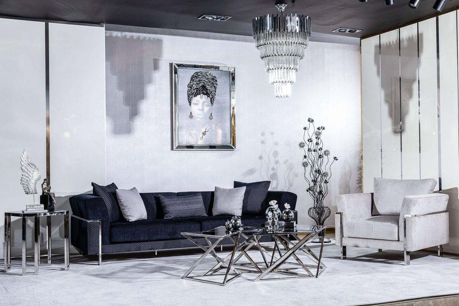 Salle de séjour Ensemble de canapés 3+1 Miroir Table basse Place Suite Design