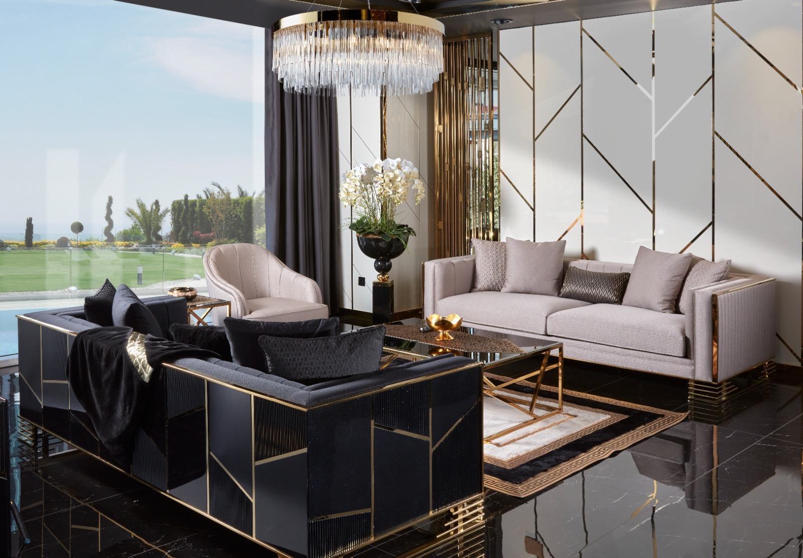 Ensemble de canapé de luxe canapé fauteuil 3+1 places table basse table d'appoint set 4 pièces