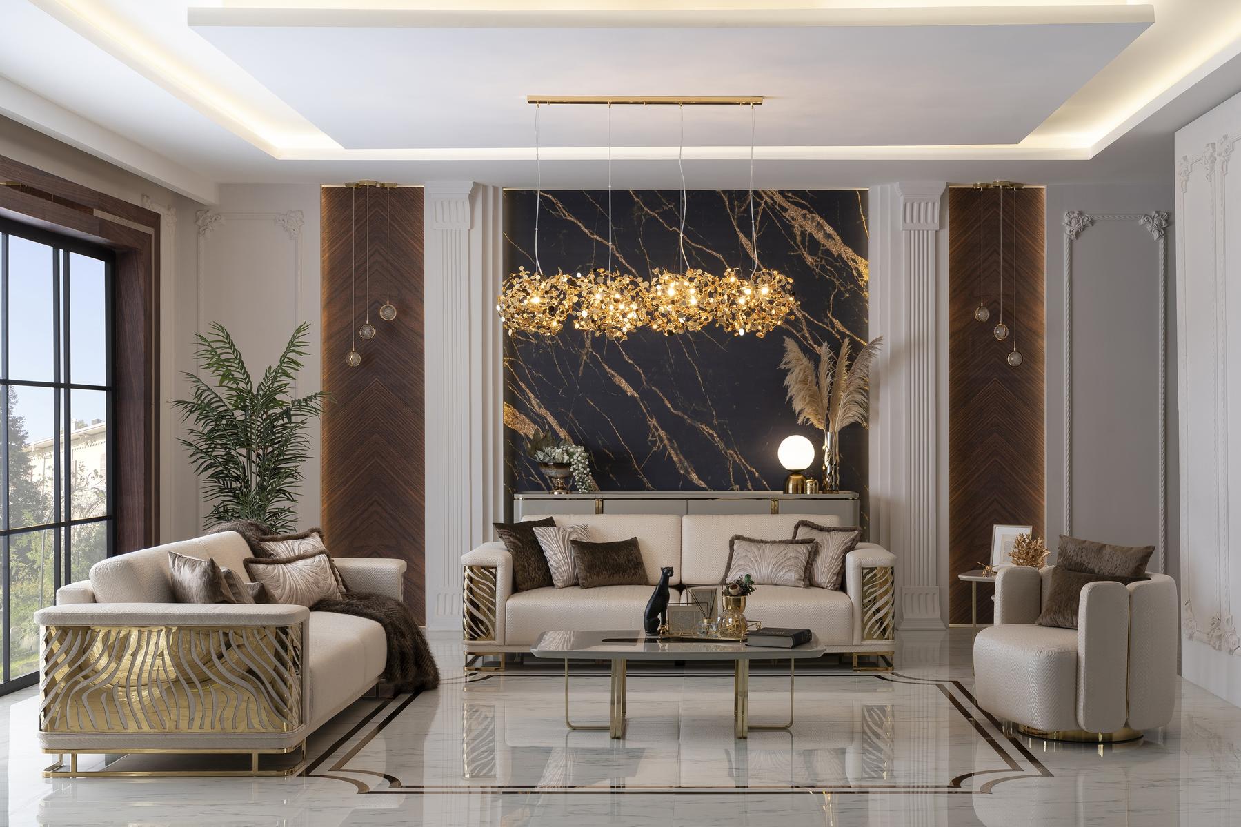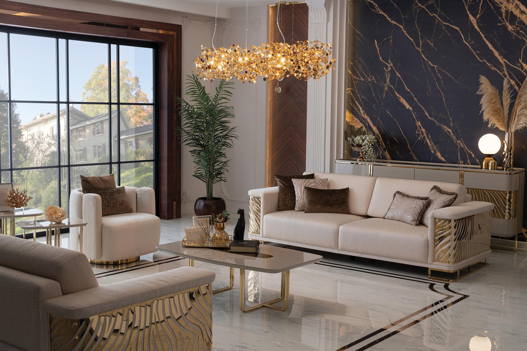 Ensemble de canapé de luxe 4 places + 3 places fauteuil table basse moderne 4 pièces. Design de l'ensemble