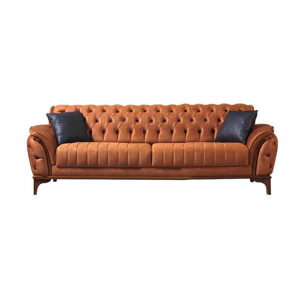 Suite Orange-Noir Chesterfield luxueuse Ensemble de fauteuils trois places 2 pièces