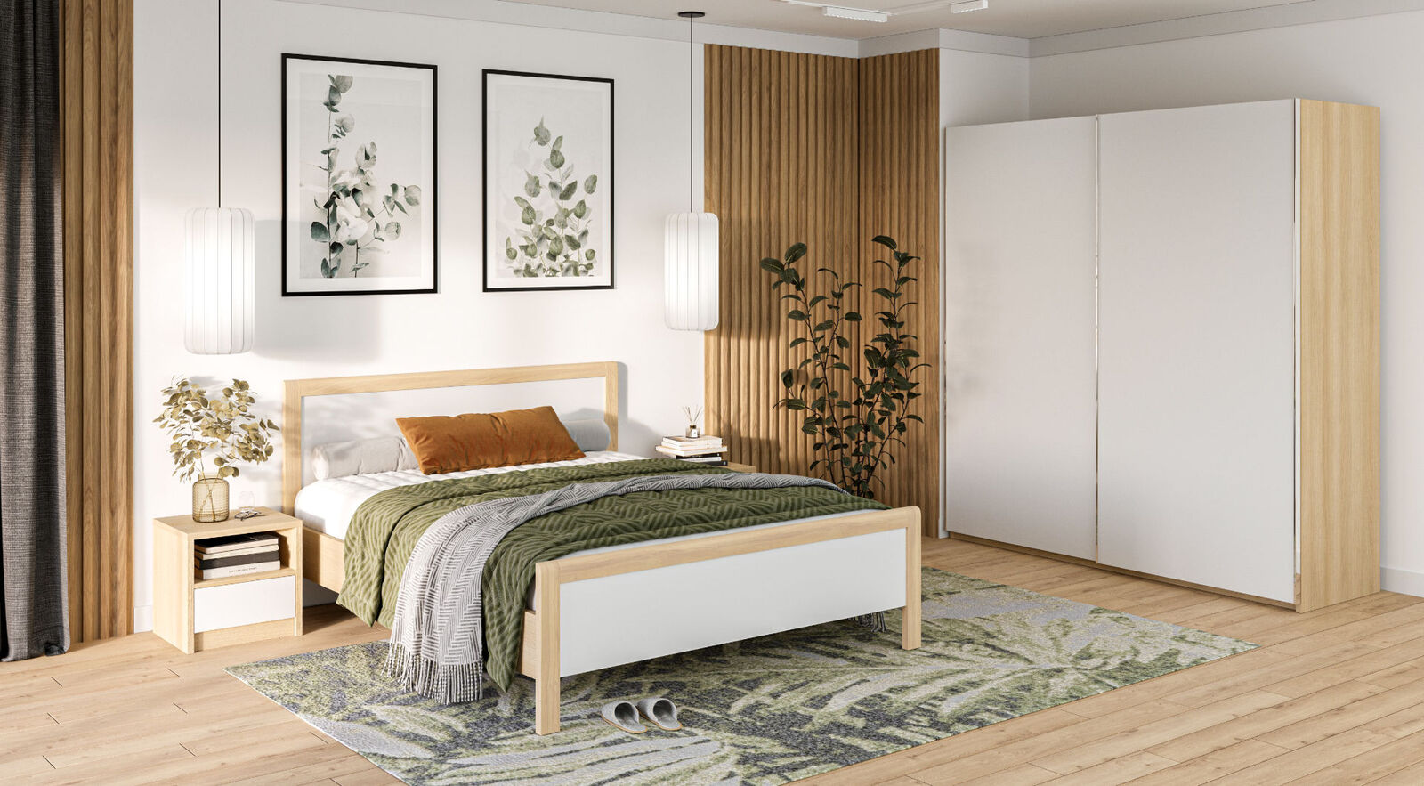 Mots-clés : Ensemble de chambre à coucher, lit avec tables de chevet, mobilier de chambre à coucher