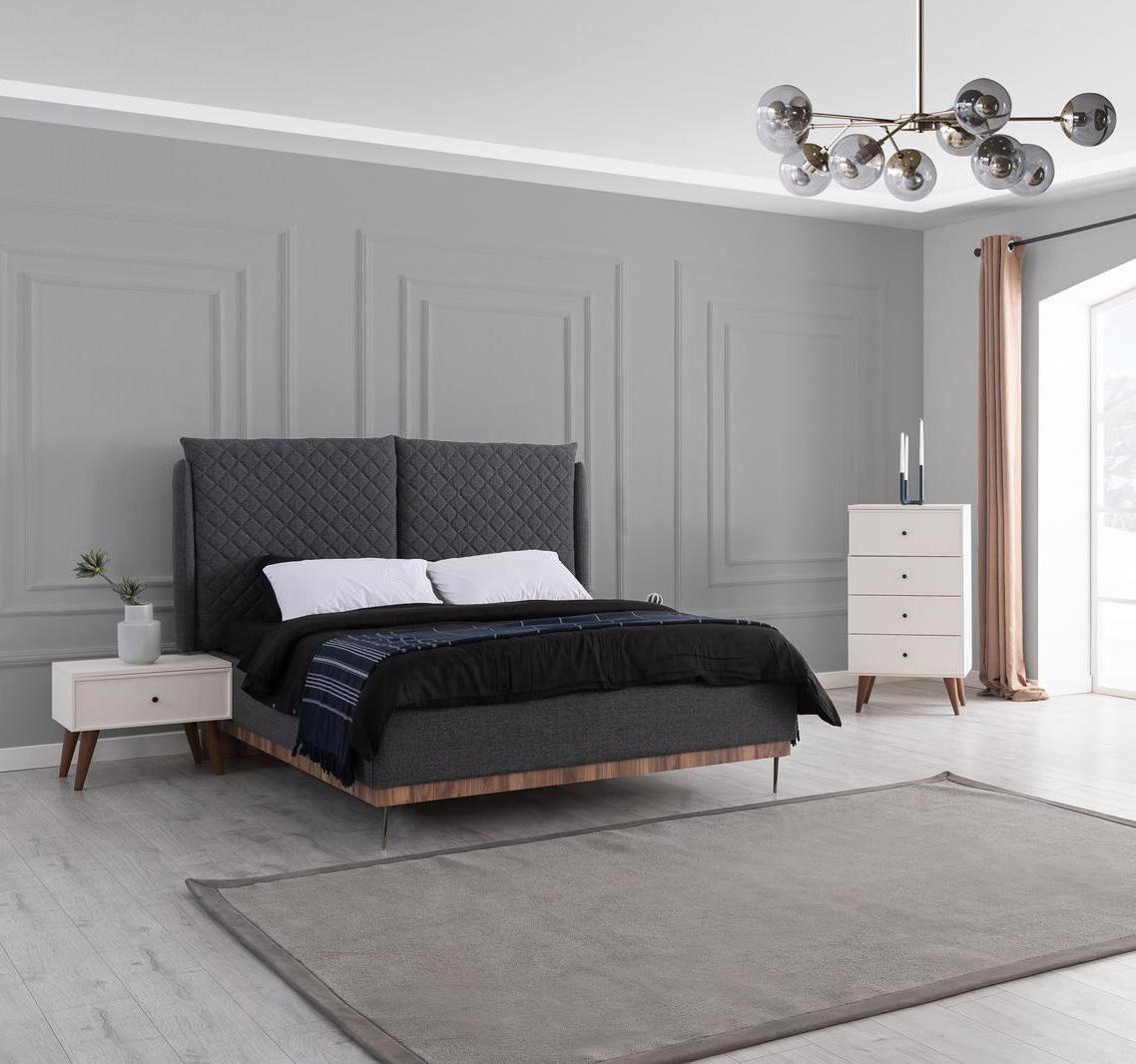Chambre Suite Noir Lit double Blanc 2x Tables de chevet en bois