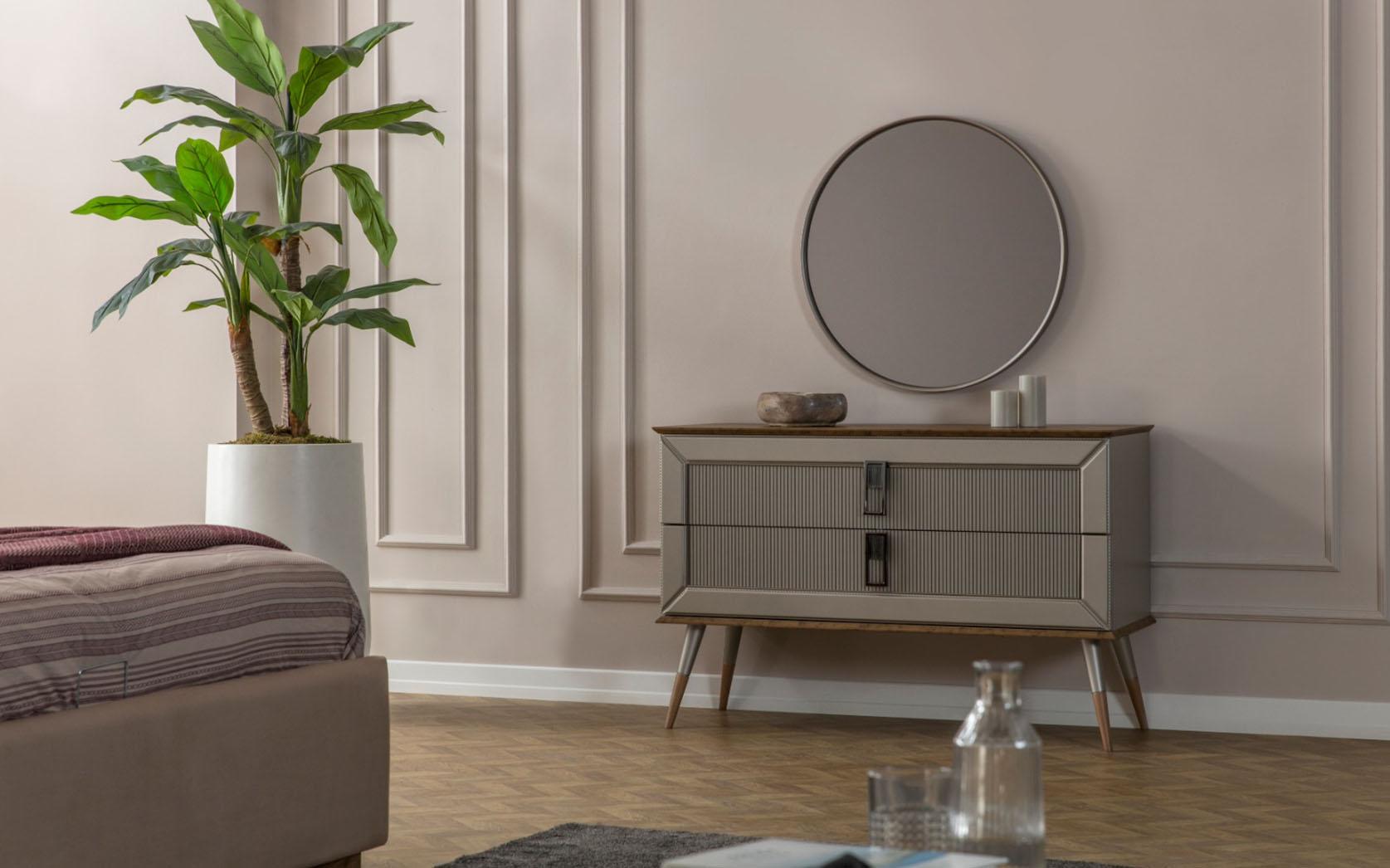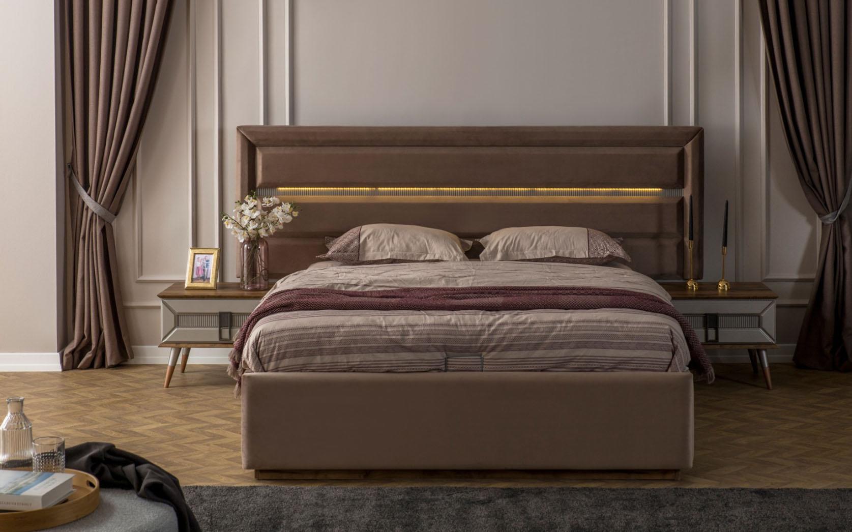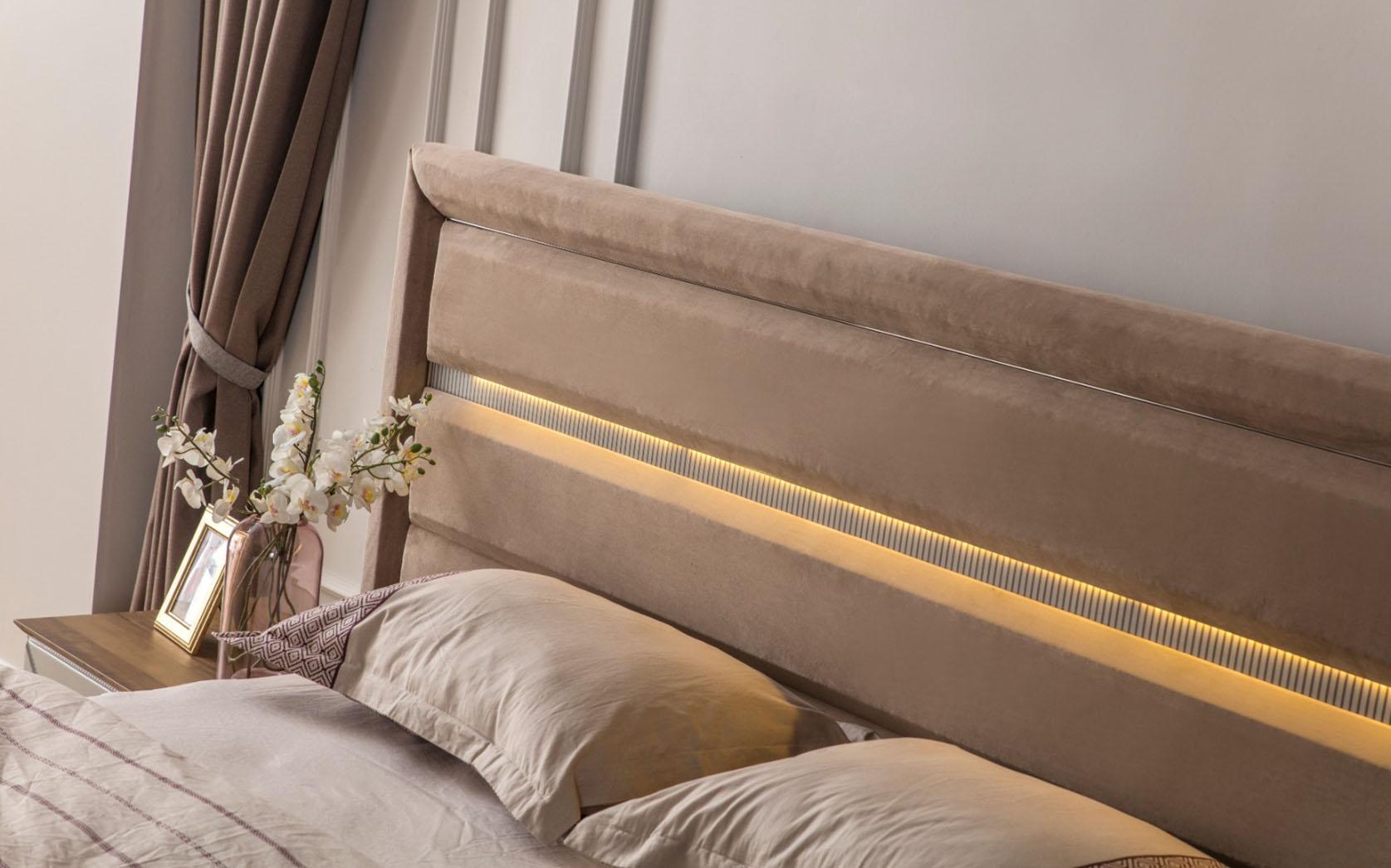 Mots-clés : Ensemble de chambre beige, mobilier élégant, confort de la chambre