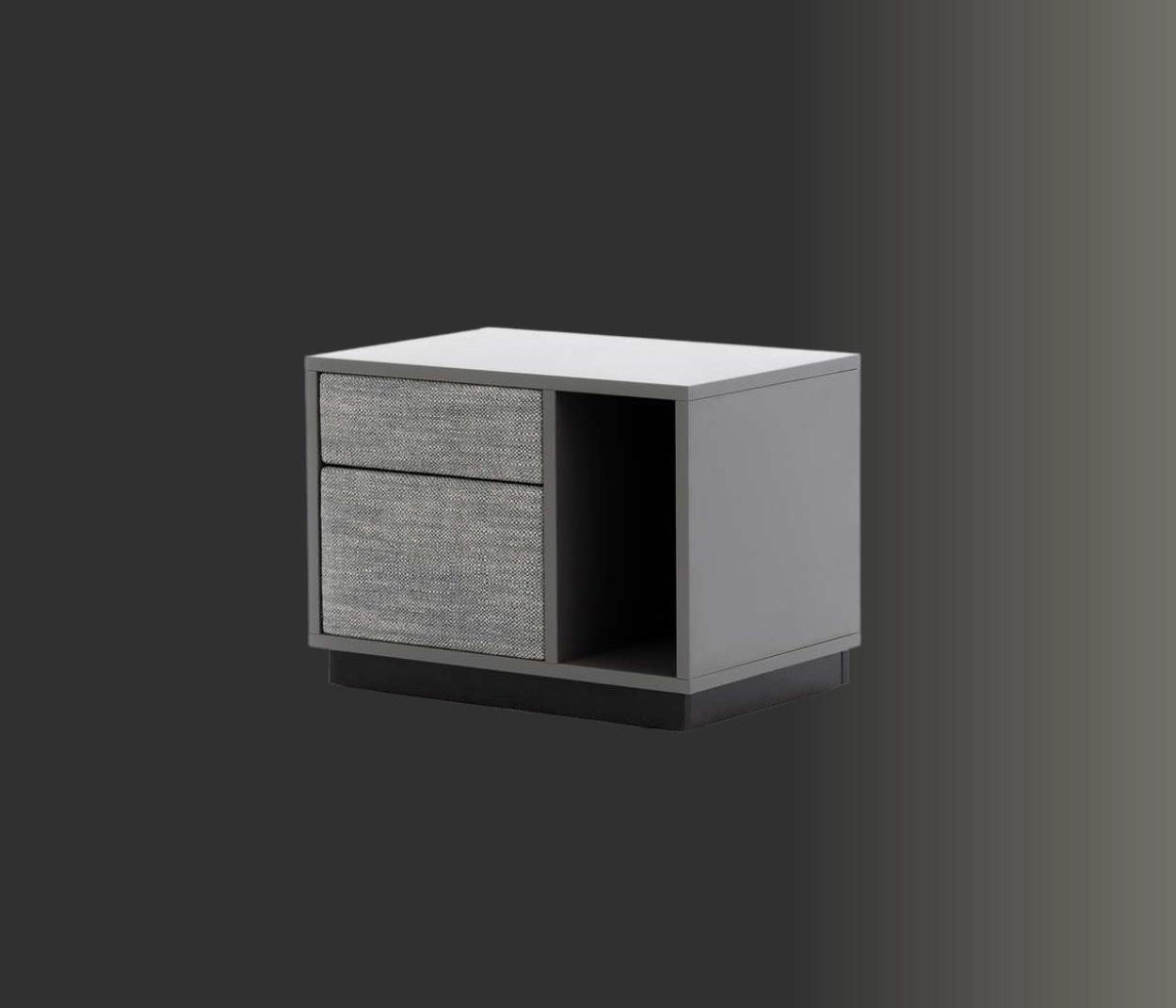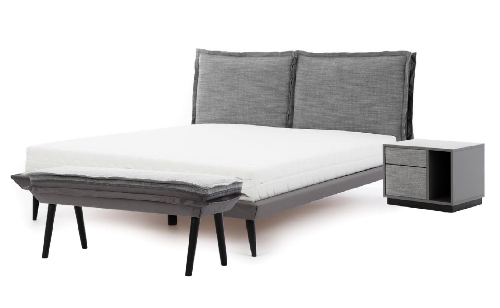 Ensemble de chambre Gris Lit Élégant 2x Tables de chevet Tabouret de luxe Moderne 4 pièces.