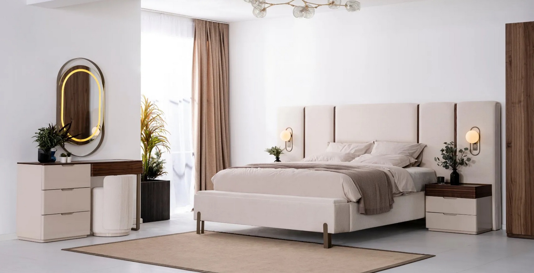 Découvrez l'ensemble de meubles de chambre à coucher complet et luxueux, une harmonie parfaite de design et de confort. Ce trio exquis, composé d'un lit somptueux, d'un banc élégant et de deux tables de nuit raffinées, incarne l'essence de l'art de vivre. Le tissu beige, délicat et chaleureux, apporte une touche de sophistication tout en créant une atmosphère apaisante. Chaque pièce est conçue avec une attention minutieuse aux détails, reflétant deux décennies d'expertise en mobilier haut de gamme. Ce mobilier ne se contente pas d'aménager votre espace ; il élève votre intérieur, témoignant d'un style de vie exclusif et d'un goût raffiné. Offrez-vous l'indulgence d'une chambre à coucher à la fois chic et intemporelle.