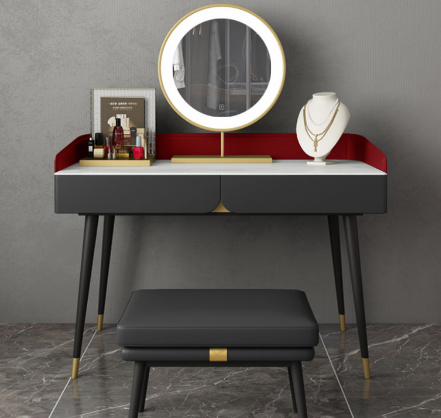 Conçu en bois et pierre, ce meuble est non seulement esthétique mais aussi robuste et durable. La coiffeuse murale avec miroir est parfaite pour une utilisation dans une chambre à coucher, une salle de bain ou même dans un salon. Transformez votre routine de soin personnel en un moment de luxe avec cette coiffeuse fonctionnelle et stylée. Laissez-vous inspirer par son design unique et pratique pour créer votre espace de beauté idéal.