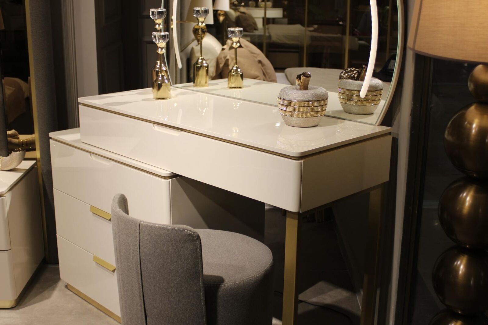 Mots-clés : Design Coiffeuse, Miroir, Luxe, Mobilier de chambre à coucher, 2 pièces, neuf