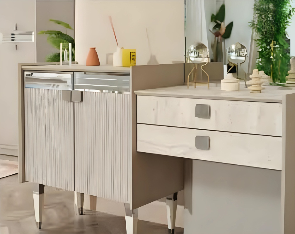 Découvrez le meuble de coiffeuse de luxe, une pièce maîtresse pour votre chambre, alliant élégance et modernité. Conçu en bois de haute qualité avec une finition gris délicat, il évoque la sophistication du design contemporain. Son miroir parfaitement intégré offre une réflexion impeccable, transformant votre routine quotidienne en un moment de grâce. Chaque détail a été minutieusement élaboré, reflétant notre engagement envers l'excellence, cultivé au cours de vingt années de passion pour le mobilier haut de gamme. Ce meuble n'est pas seulement un accessoire, il incarne un style de vie exclusif, apportant une touche de raffinement à votre intérieur. Choisissez l'exceptionnel.