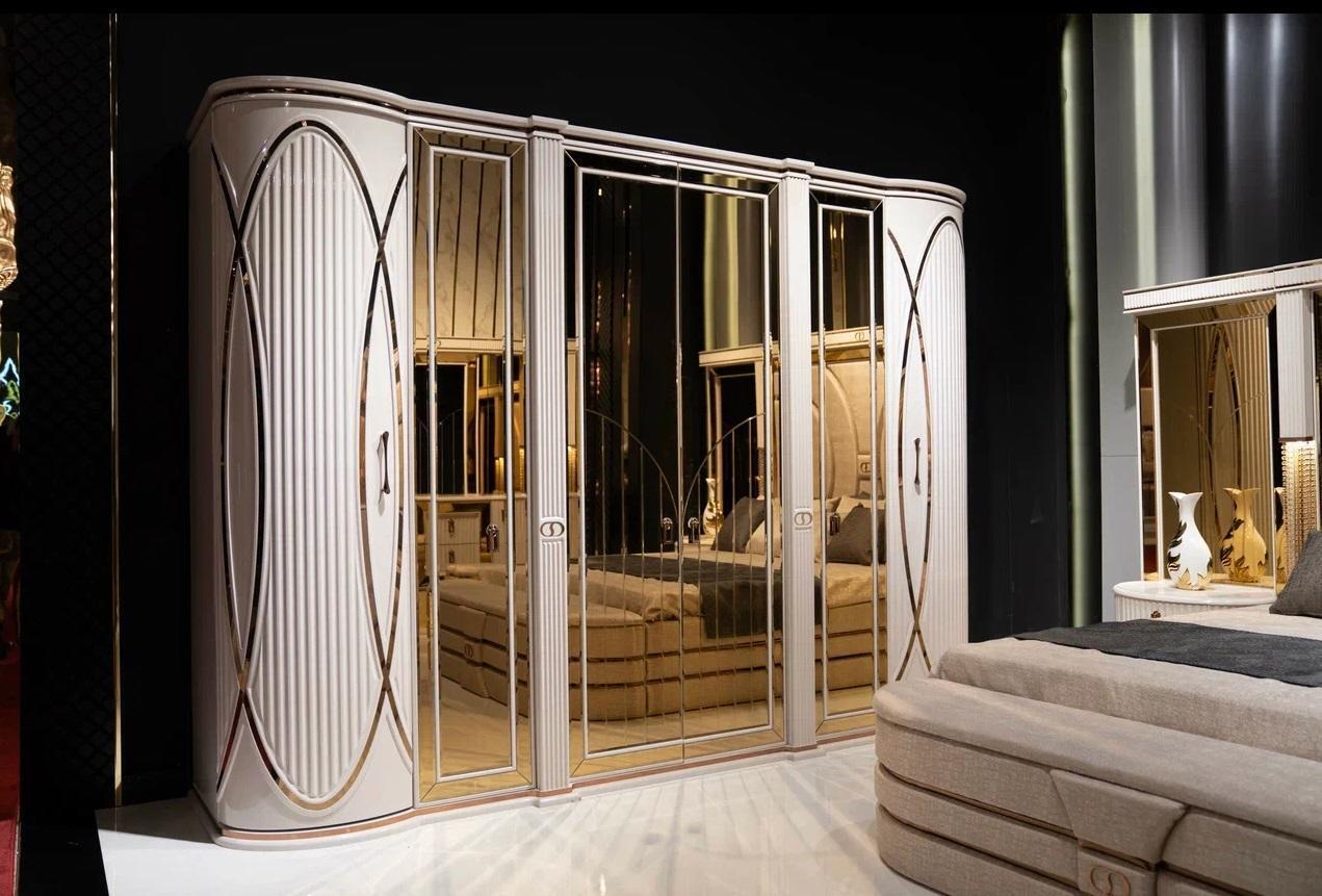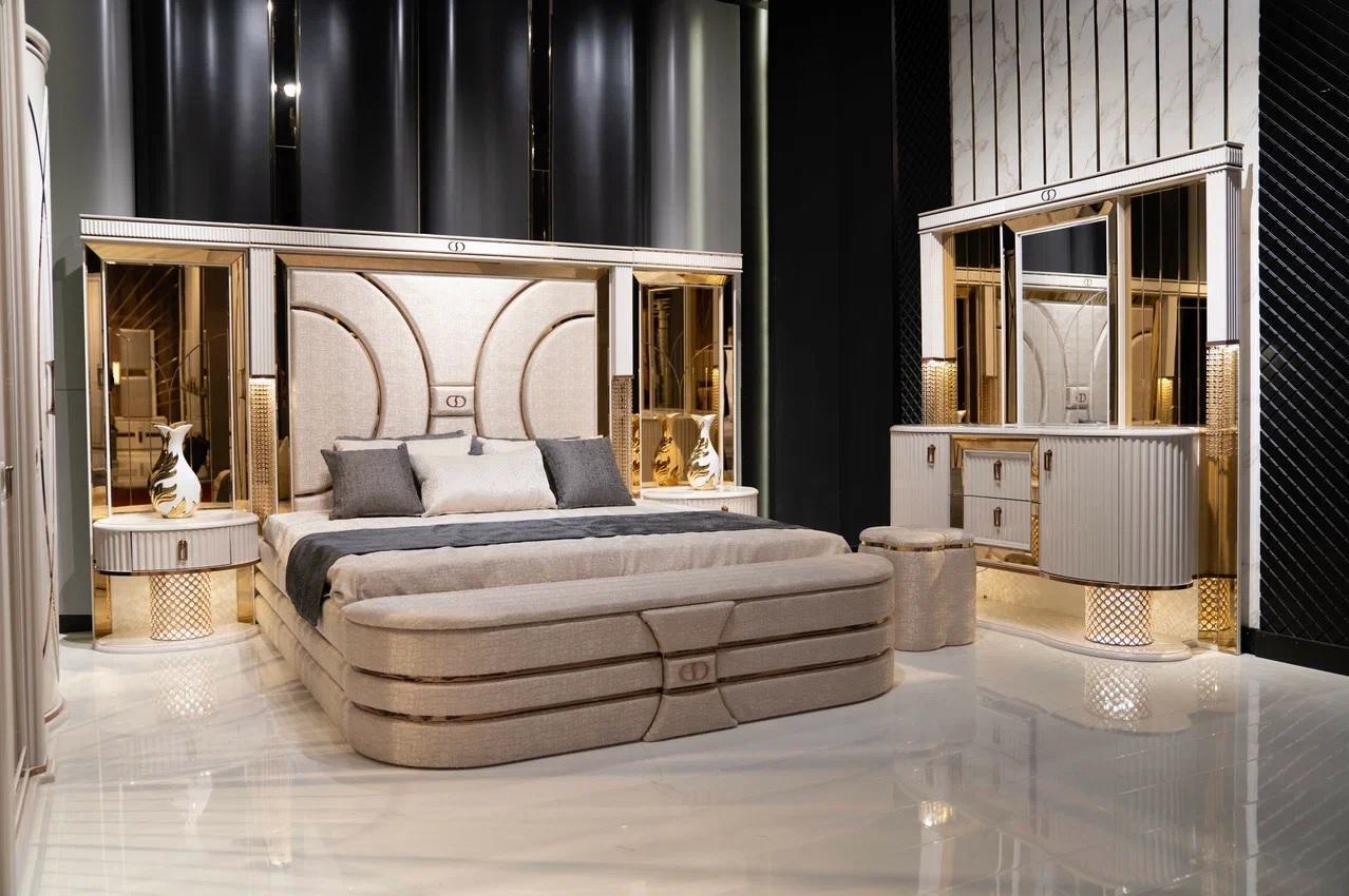 Offrez-vous un espace de repos luxueux avec l'**Ensemble de chambre à coucher complet Lit 2x Tables de chevet Armoire neuf 7 pièces**. Cet ensemble est conçu pour apporter une touche d'élégance et de fonctionnalité à votre chambre. Le lit spacieux aux dimensions généreuses de **335 x 200 x 240 cm** offre un confort optimal, tandis que les 2 tables de chevet assorties ajoutent une touche de praticité à votre espace de sommeil. L'armoire spacieuse de **300 x 75 x 250 cm** et la coiffeuse avec miroir offrent un espace de rangement suffisant pour vos vêtements et accessoires, tandis que le tabouret assorti complète l'ensemble avec style.