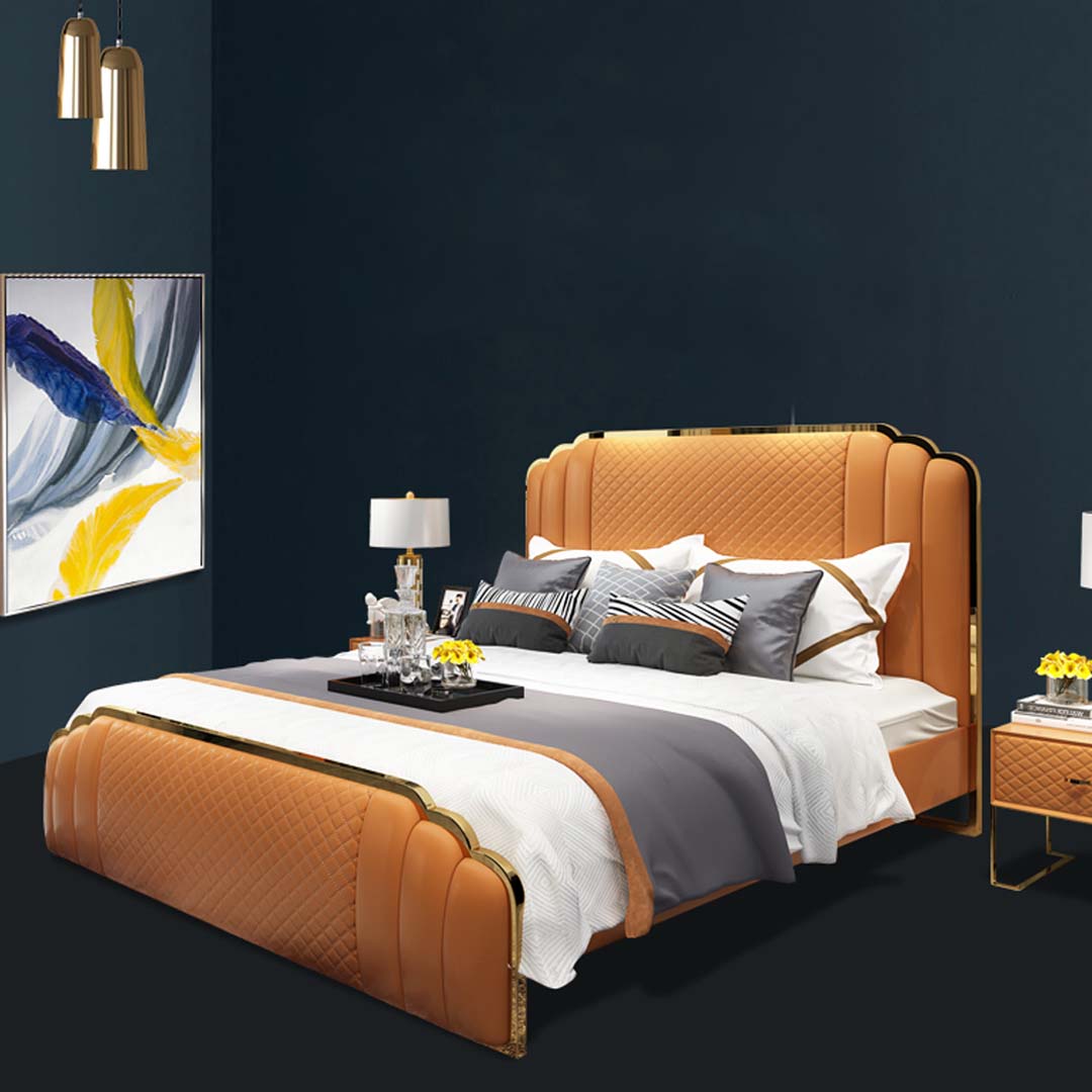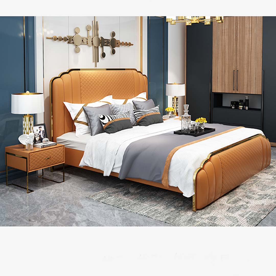 Ce magnifique ensemble de lit en cuir est non seulement fonctionnel, mais aussi esthétique. Sa couleur élégante et ses dimensions généreuses en font un point focal idéal pour votre chambre à coucher. Que vous cherchiez à créer un environnement de sommeil relaxant ou à mettre en valeur votre style de décoration intérieur, cet ensemble de meubles de luxe est un choix parfait. Avec sa matière premium et son design moderne, le Lit en cuir design chambre à coucher 3 pièces apportera une ambiance de sophistication à votre espace personnel, transformant votre chambre en sanctuaire de confort et de style.
