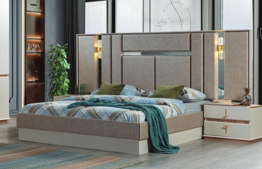 Mobilier de chambre beige Lits de luxe Tables de chevet de designer Ameublement
