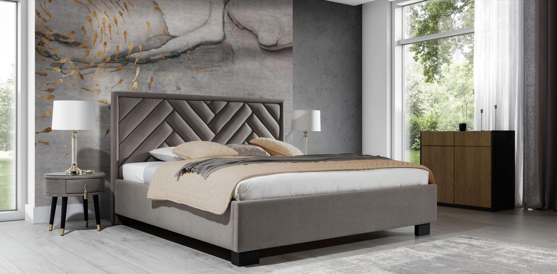 Mots-clés : Ensemble de chambre à coucher, gris, lit, bois, 2 tables de nuit