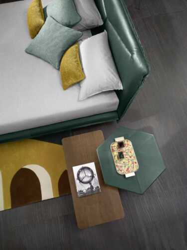 Cadre de lit double Chambre de luxe Lit double Lit en bois Vert Lits en cuir neufs
