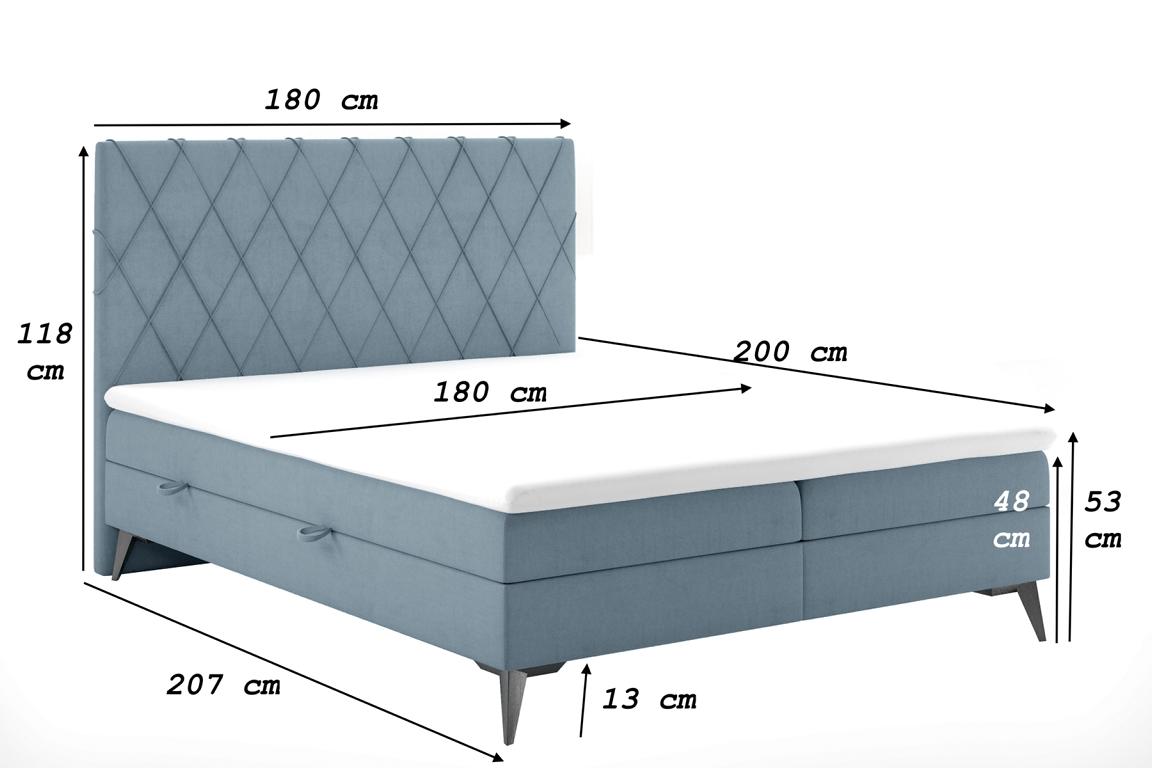 Dans sa dimension généreuse d'environ 180 x 207 x 118 cm, ce lit offre un espace de couchage spacieux de 180 x 200 cm, idéal pour des nuits paisibles. La surface de couchage généreuse et la construction robuste garantissent une longue durabilité. Ajoutez une note de modernité et de confort à votre chambre avec ce Chambre Lit Mobilier de luxe Tissu d'ameublement, qui se marie parfaitement avec divers styles de décoration. Détendez-vous et profitez de moments de détente grâce à ce lit luxueux et élégant.