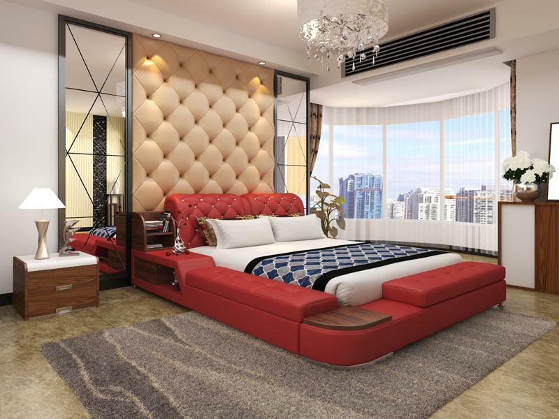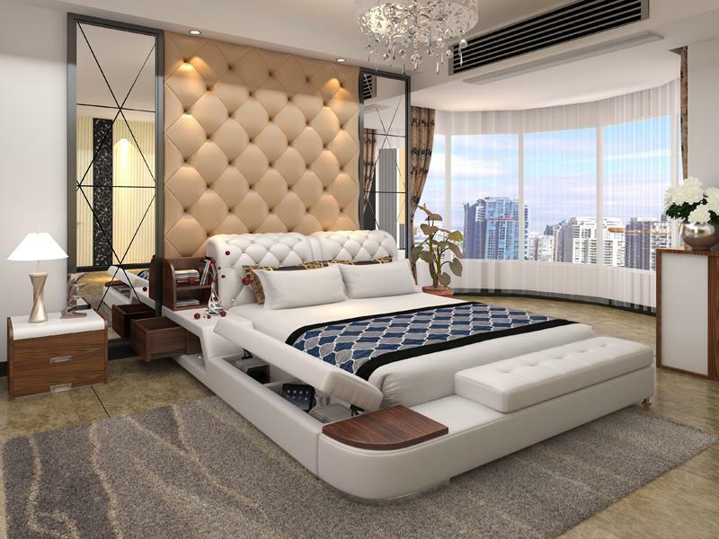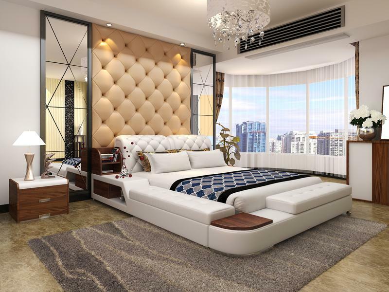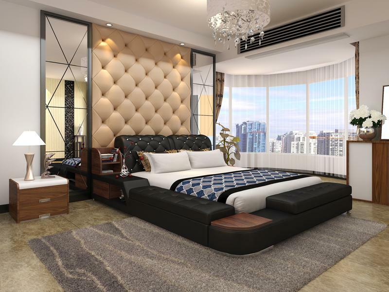 Conception de lit multifonction Revêtement de lit Lit double Lits Chesterfield de luxe