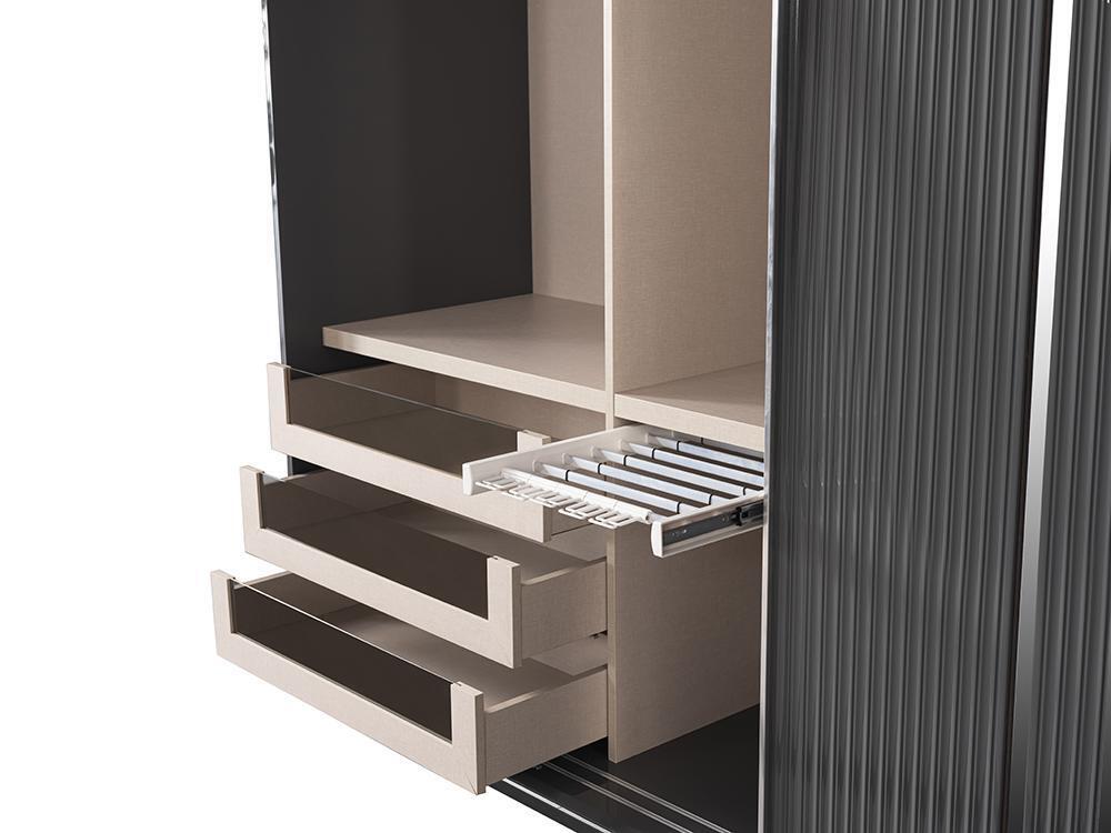 Mots-clés : Ensemble complet de chambre à coucher, lit double, tables de chevet, armoire de luxe