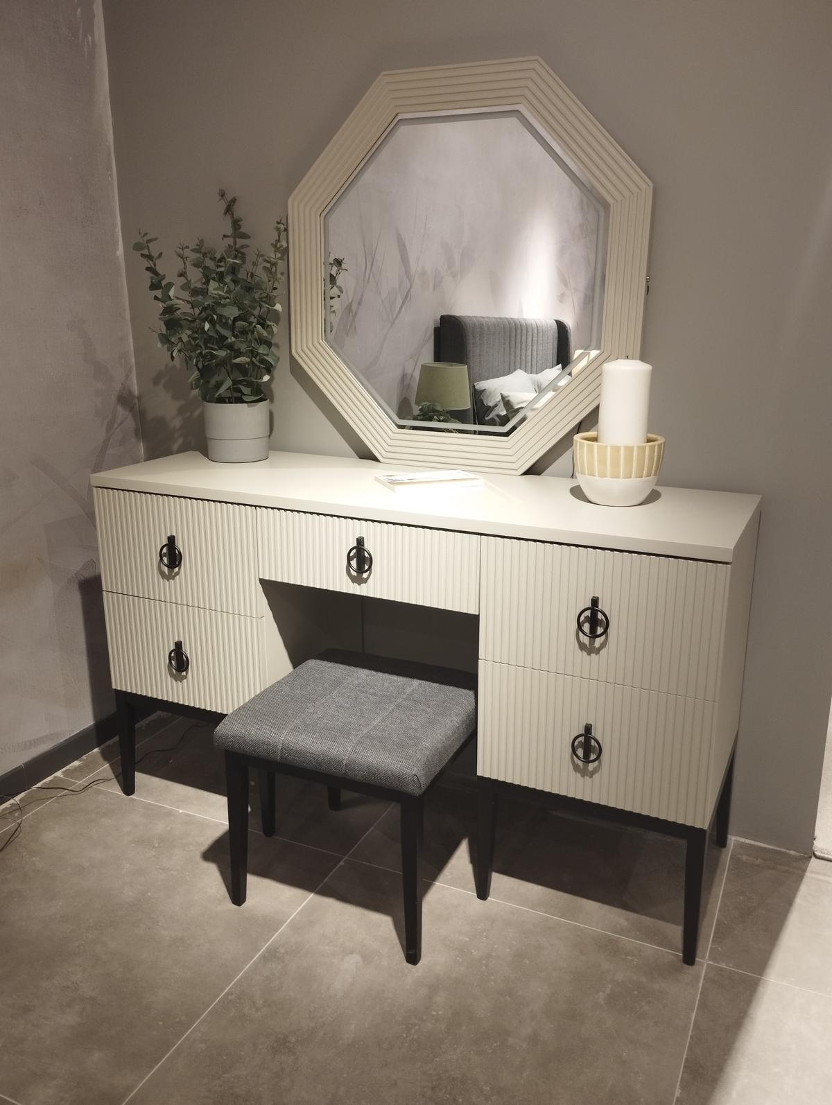 Confortable et élégant tabouret moderne en textile pour chambre.