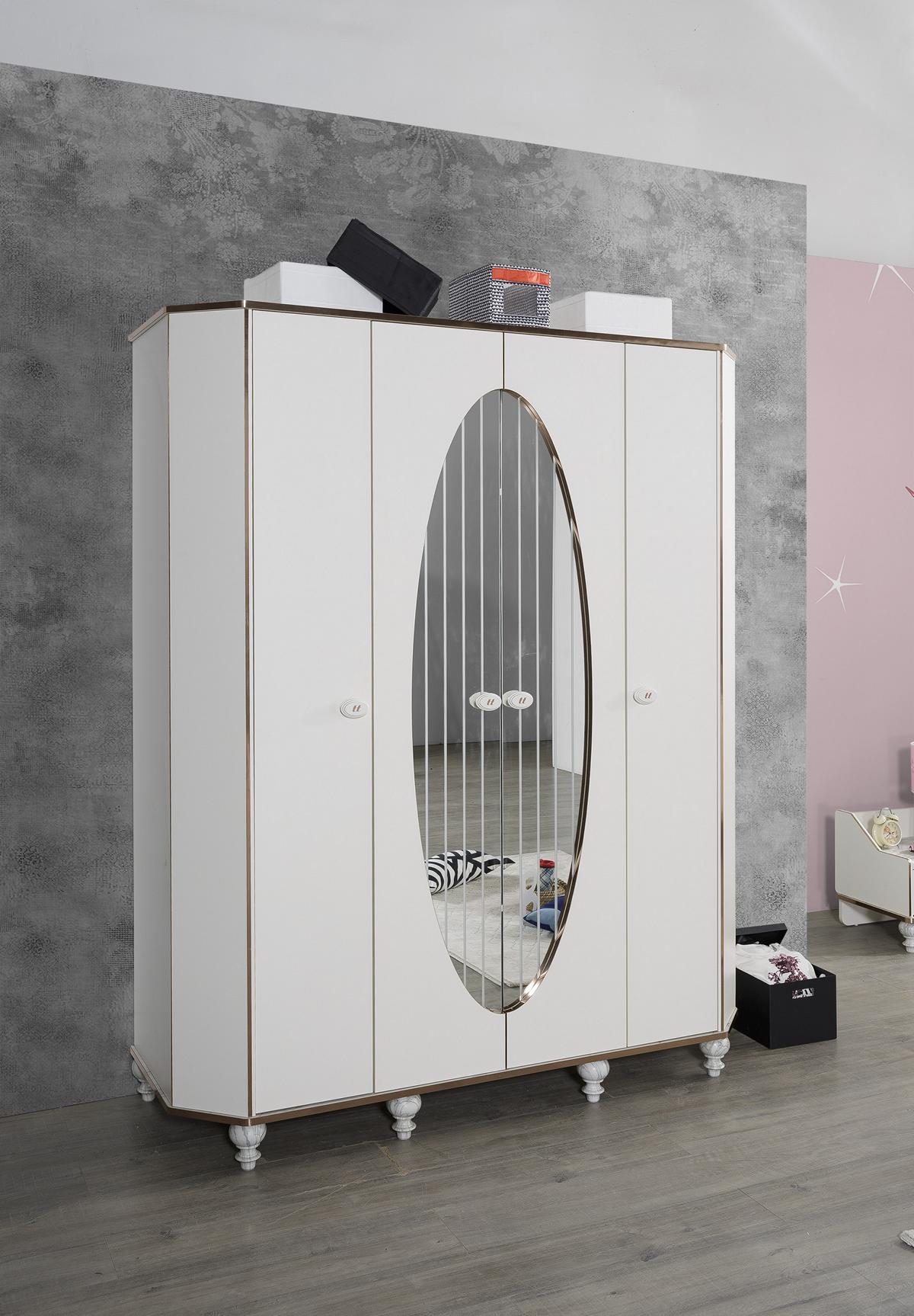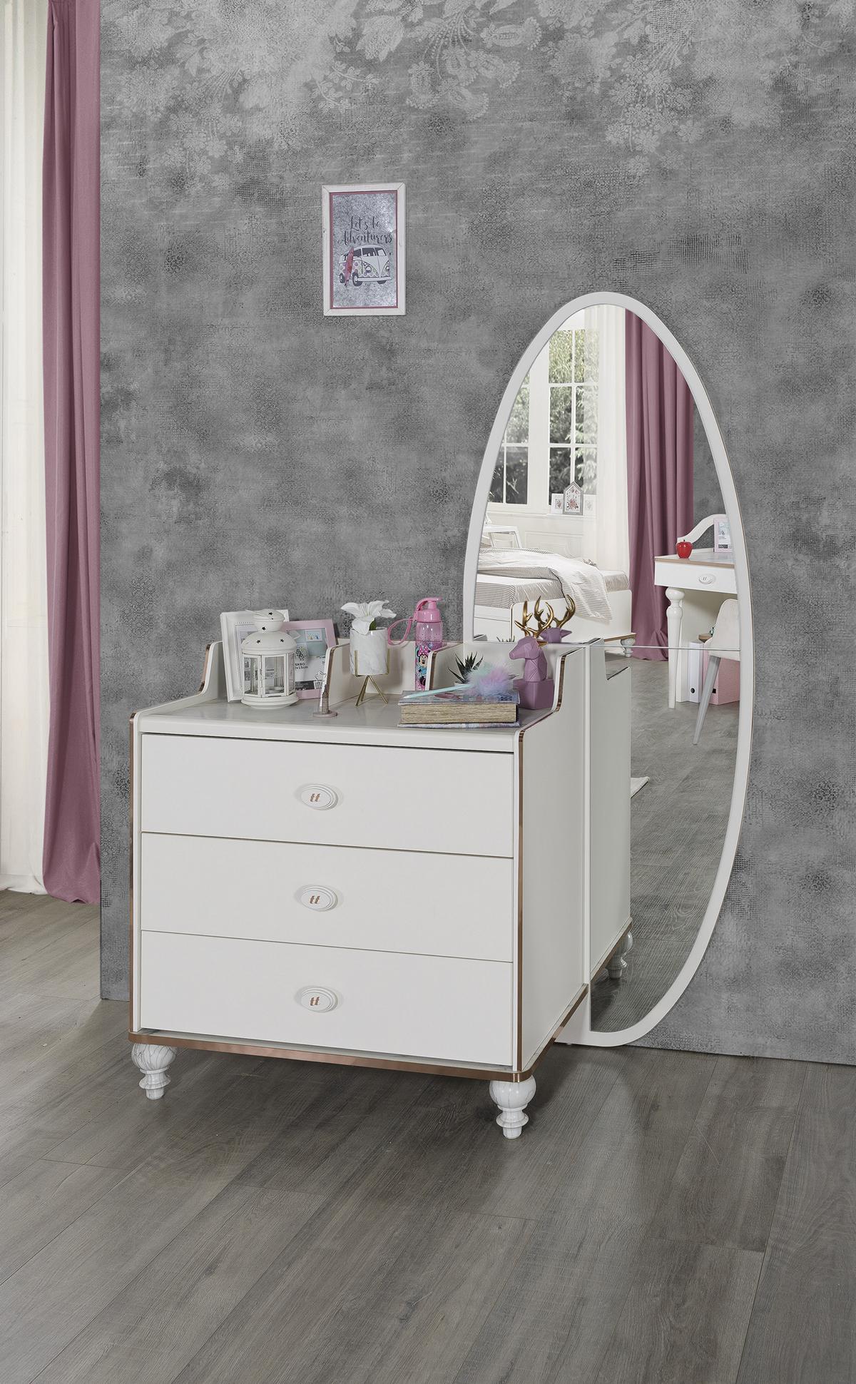 Mots-clés : Ensemble de meubles de chambre à coucher, Lit avec Table de chevet, Armoire et Commode avec Miroir Mobilier Ensemble complet pour la chambre à coucher
