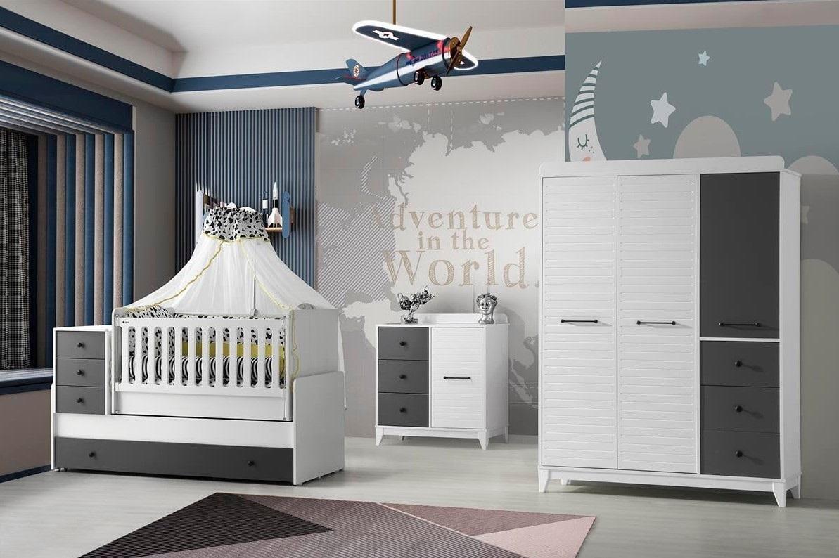 Ensemble de chambre d'enfants moderne composé d'un lit d'enfant, d'une armoire, d'une commode, 3 pièces neuves.