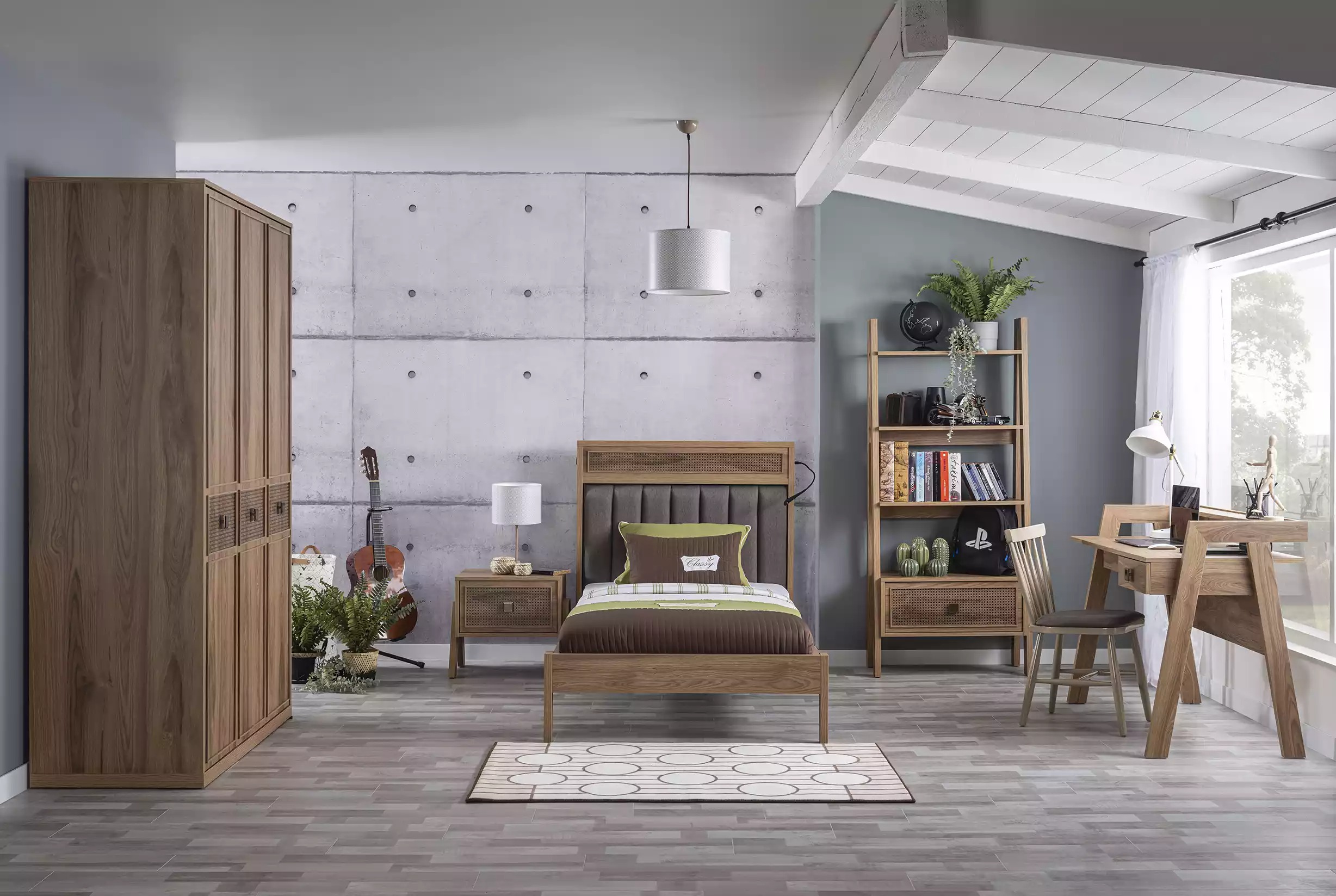 \Complétez l'ensemble avec la table de chevet, l'armoire, le bureau et la bibliothèque assortis, chacun offrant des dimensions parfaitement adaptées pour une chambre bien organisée. Que ce soit pour un enfant, un adolescent ou même un étudiant, ce mobilier en bois offre confort et fonctionnalité. L'armoire spacieuse, le bureau pratique et la bibliothèque élégante créent un environnement propice à l'étude et à la détente. Offrez à votre jeune un espace où il pourra se sentir à l'aise et inspiré, grâce à ce magnifique ensemble de mobilier en bois marron.