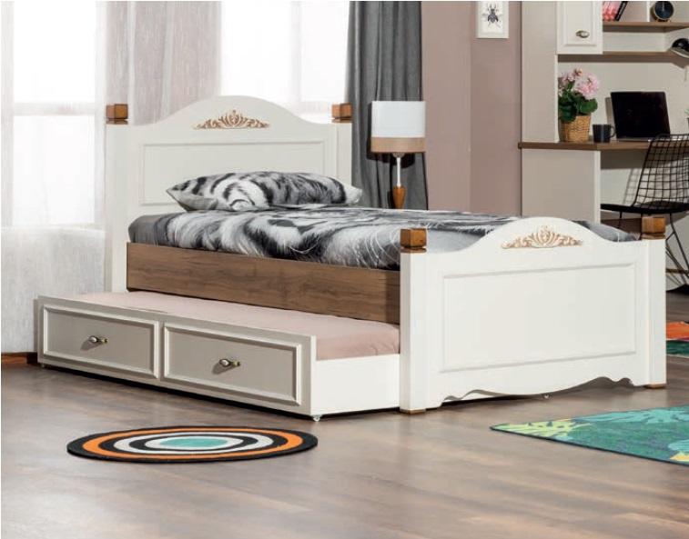 La configuration flexible de ce lit comprend un lit inférieur escamotable CY-107 avec des dimensions d'environ 195 x 97 x 27 cm, idéal pour les invités ou les soirées pyjama. Les autres dimensions disponibles (prix sur demande) offrent des options de personnalisation pour s'adapter à vos besoins spécifiques en matière d'espace. La couleur discrète et le matériau en bois de haute qualité ajoutent une touche de style et de chaleur à la chambre de votre enfant. Offrez à votre enfant un espace de sommeil confortable et élégant avec ce lit pour enfants de luxe.